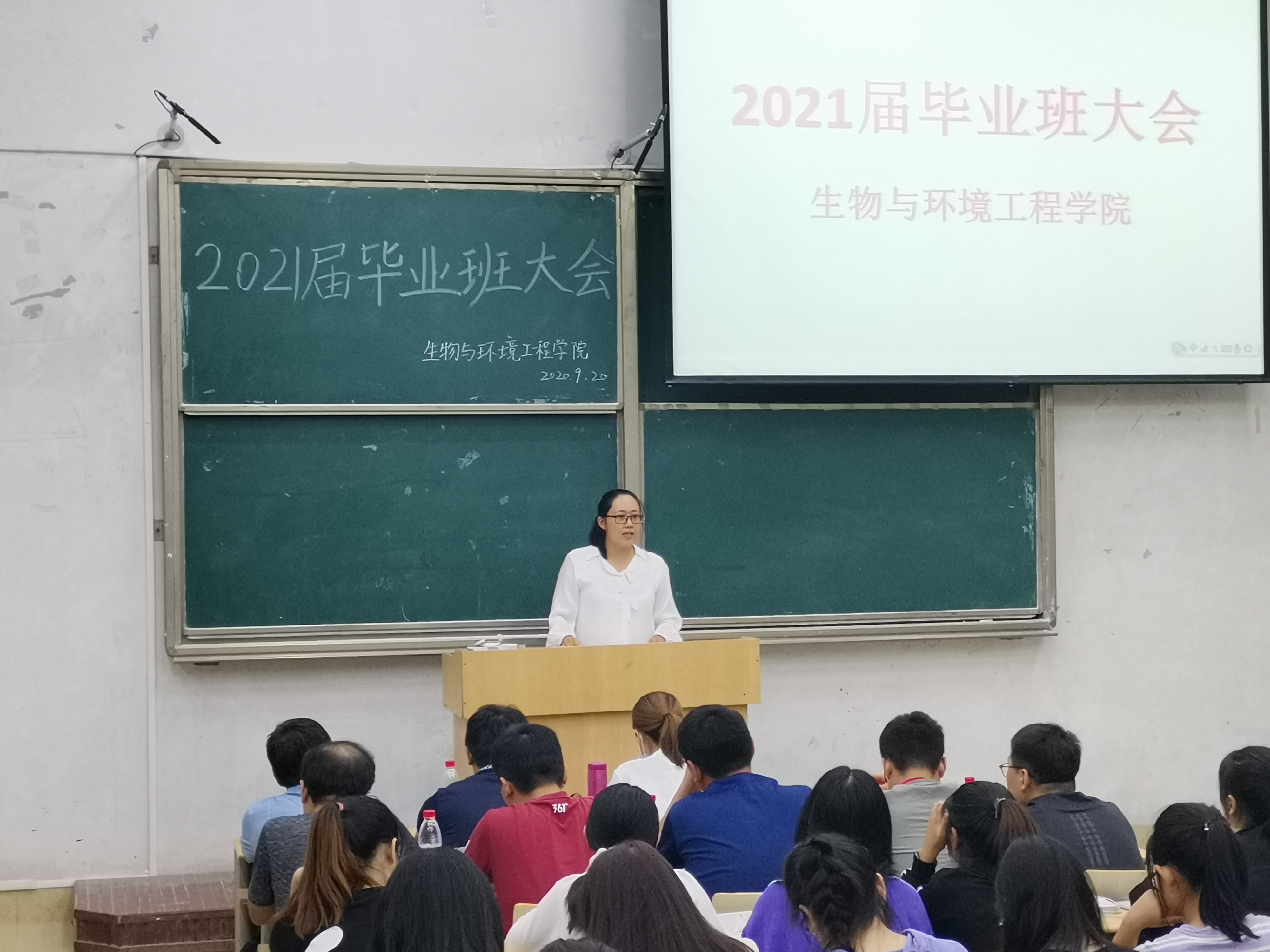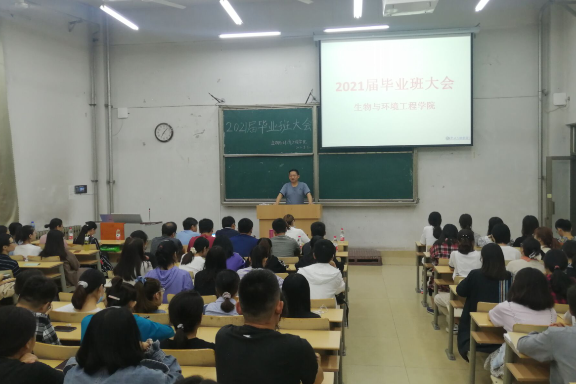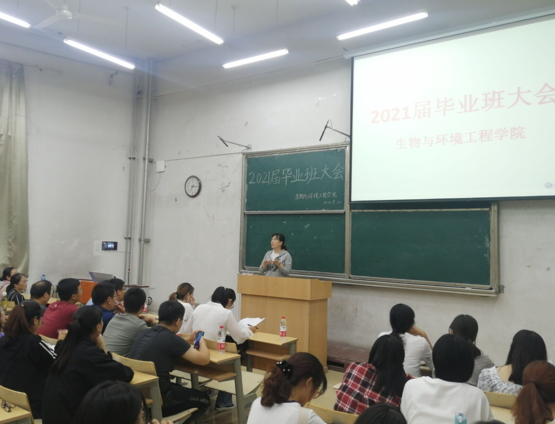 为更好引导毕业生顺利完成学业,9月19日晚,生物与环境工程学院于1号教学楼107举办2021届本科毕业生大会,毕业班班主任、200多名同学参加了本次大会。王君副院长主持。
