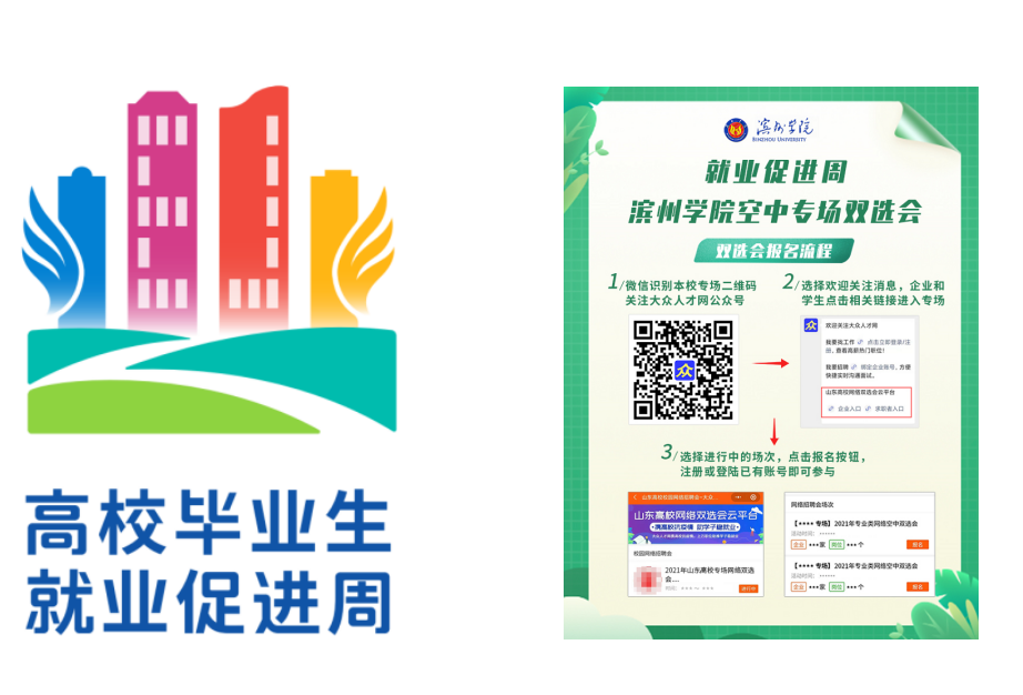 手机微信扫码关注“大众人才网”微信公众号,企业和毕业生分别点击相关按钮进入滨州学院专场,点击报名按钮,注册或登录已有账号即可直接参与。