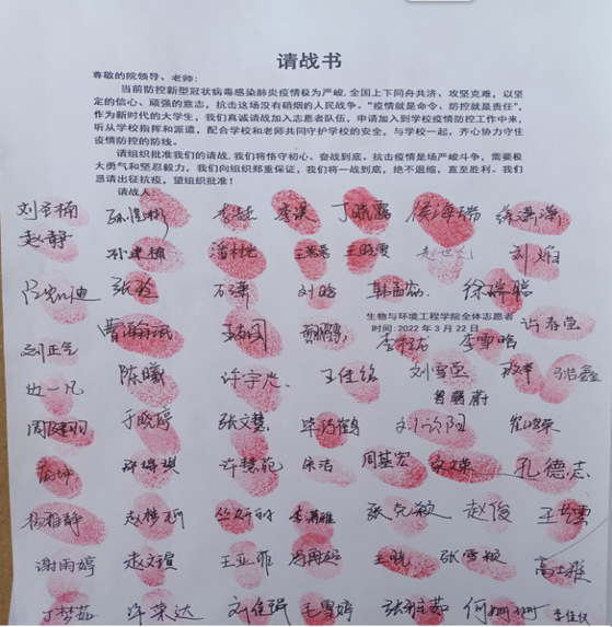 各团支部对疫情防控期间管理规定进行拟合,组成了倡议书,组织同学们了解签署了封校期间遵规守纪的倡议书。各支部团员积极参与,齐心协力,共克时艰。
