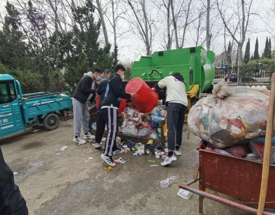 疫情防控封校期间,学院的志愿者和学生党员们主动承担了宿舍公寓楼大量的宿舍垃圾清运工作,为了减轻垃圾清运压力,积极倡导同学们主动在外出时自觉将垃圾袋系好,带至公寓外的垃圾桶、西外环的垃圾清运车内,还有的同学自发加入了志愿者队伍中,为疫情防控贡献自己的力量。