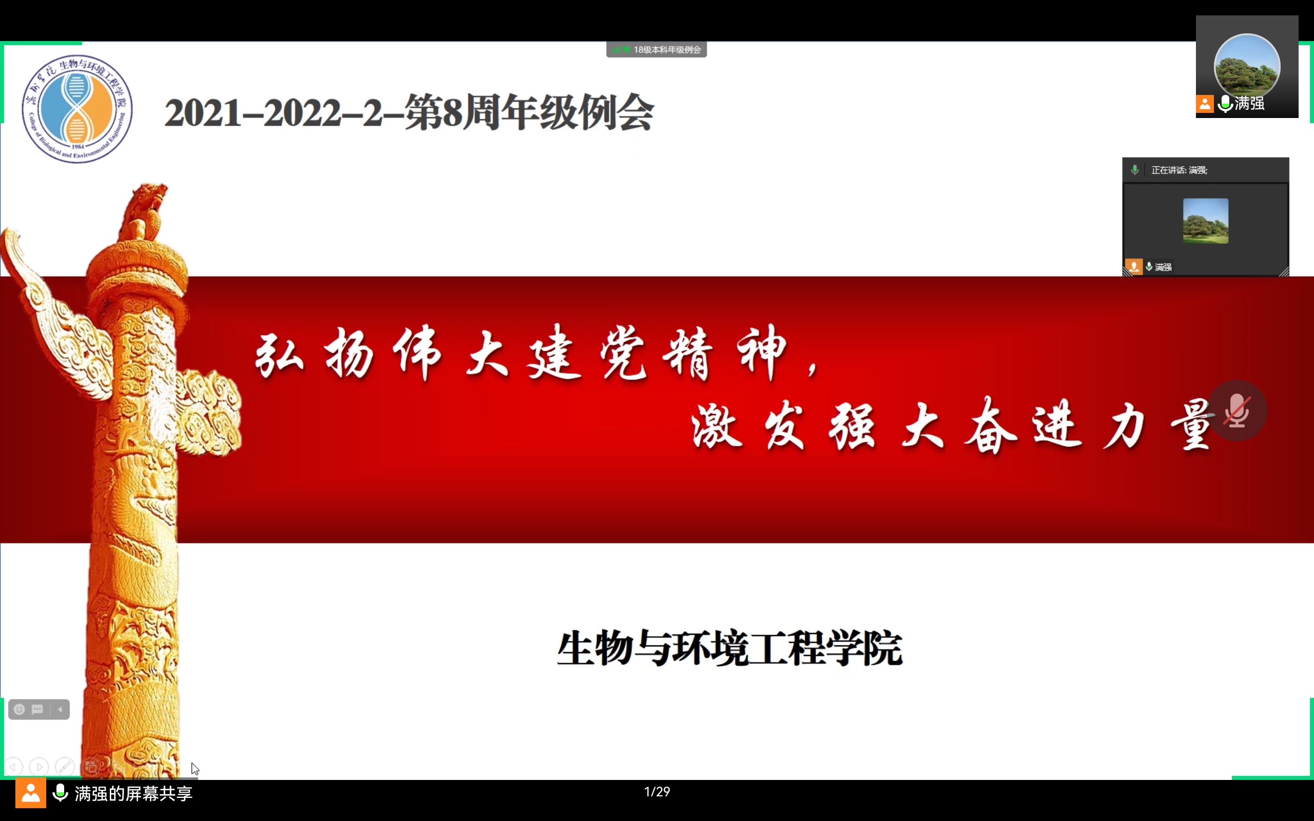 4月10日,生物与环境工程学院在腾讯会议召开了线上年级例会。此次活动由各级分管辅导员主持,全体学生参加。