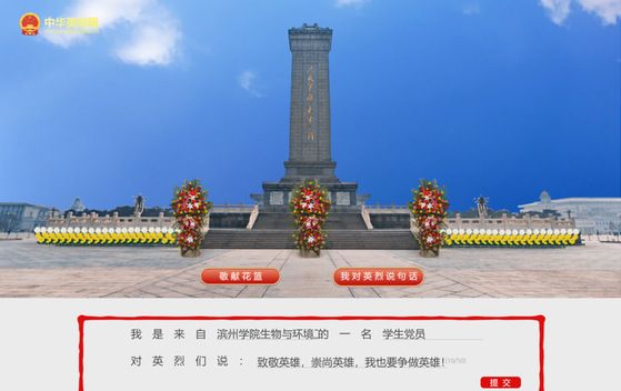 学生党员通过登录中华英烈网、山东英烈网和滨州文明网,以网络签名、留言、向烈士鞠躬鲜花等方式祭奠英烈,学习革命先烈光辉事迹。“致敬英雄,崇尚英雄,我也要争做英雄!”,正如学生在网上的留言所说,作为当代青年,不仅要缅怀先烈,致敬英雄,更要以实现中华民族伟大复兴为己任,沿着他们的足迹,不负时代,不负韶华,接续奋斗,砥砺前行。