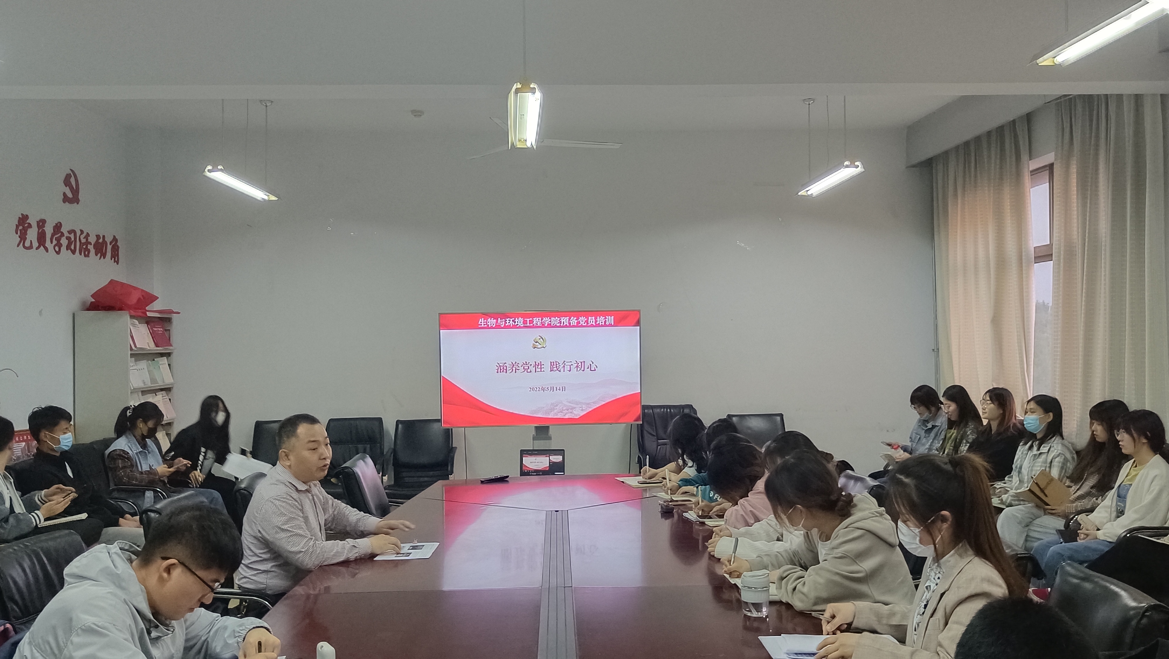 为进一步提升预备党员的思想政治素质,加强对中国共产党的了解,5月14日,生物与环境工程学院于实验楼B7-304会议室召开“涵养党性 践行初心”培训会议。此次会议由生物与环境工程学院学生科科长、团总支书记赵望锋主讲,全体预备党员参加。