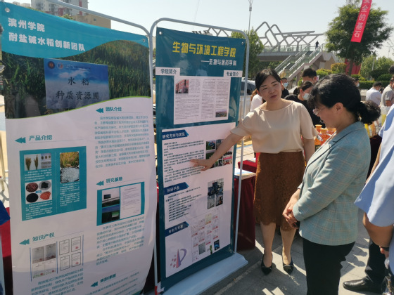 仪式结束后,毕志伟市长在生物与环境工程学院宣传展台前驻足,听取学院近年来的发展情况和成果汇报,并给予了高度评价。她指出,滨州学院生物与环境工程学院发展势头强劲,科研团队完备,应进一步和地方发展深入融合,开创高质量发展新局面。王君院长表示,我院将继续发挥高层次人才资源优势,科研平台与团队优势,教育教学资源优势,深入对接滨州粮食产业发展需求,打造高端智库,深化产教融合,推动科技成果转化,实现特色发展,全面提升社会服务能力,深入推进科技和人才兴粮兴储,助推地方经济社会发展。