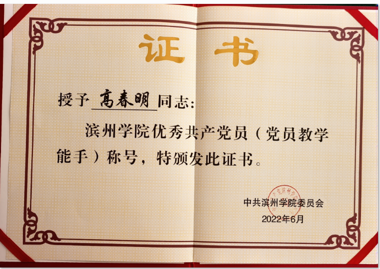 我院教工第一支部被评为优秀基层党组织,高春明老师被评为优秀共产党员(党员教学能手)。