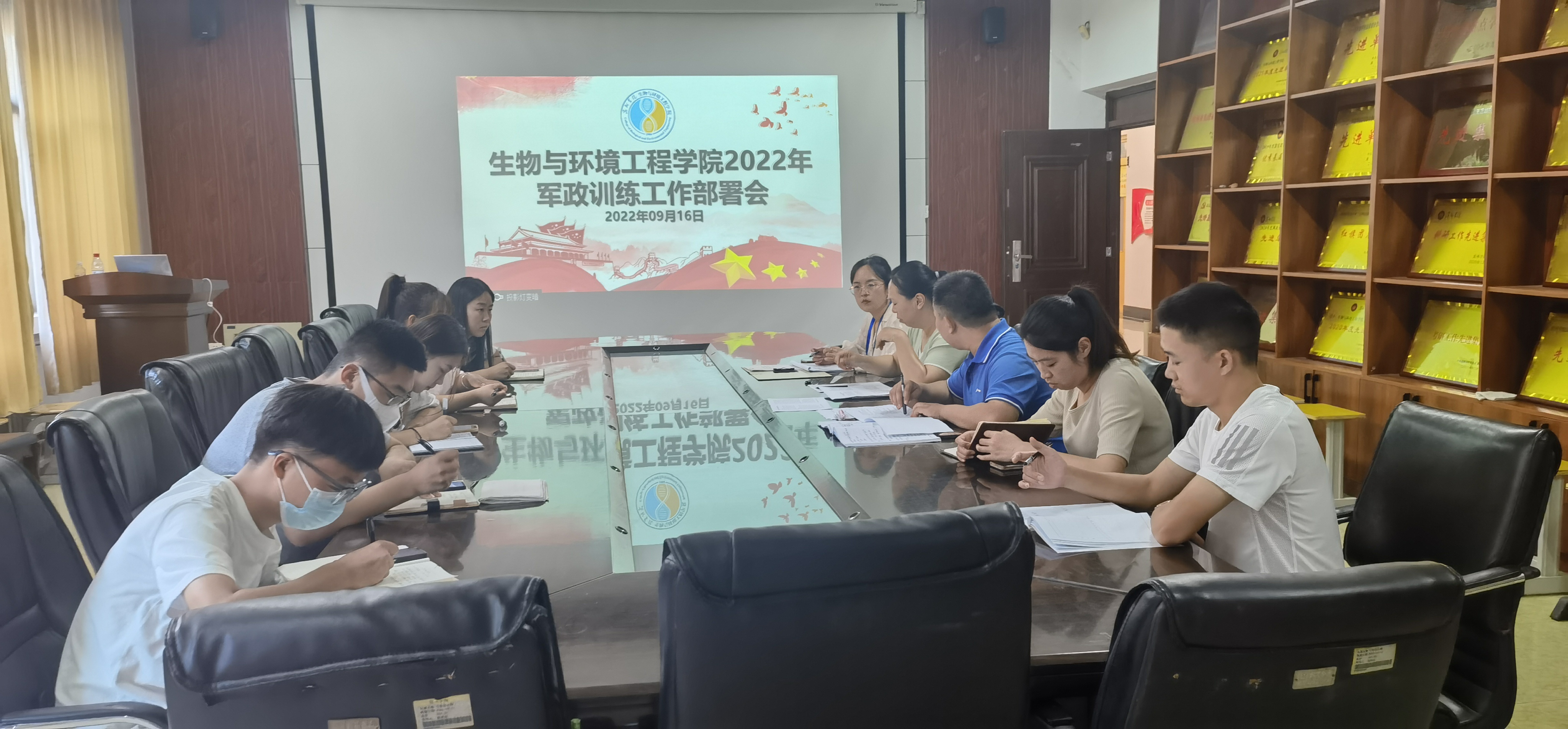 为全面做好新生军训工作,9月16日,生物与环境工程学院于实验中心B7-230会议室召开军训工作部署会议。此次会议由学生科长赵望锋主持。党总支副书记时芸出席,辅导员、学生会主要干部参加会议。