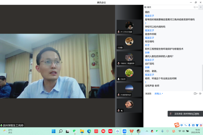 为深入落实学校研究生招生宣传方案,保证研究生生源质量,本着服务广大考生的初心,我院与9月16日晚7点召开“滨州学院资源与环境硕士研究生招生宣讲会。学院党总支书记左之涛、院长王君、副院长吴涛、潍坊科技学院化工与环境学院院长宋继梅、副院长刘芳芳等领导和老师,以及环境工程、软件工程等相关专业40余学生参加了线上宣讲会。