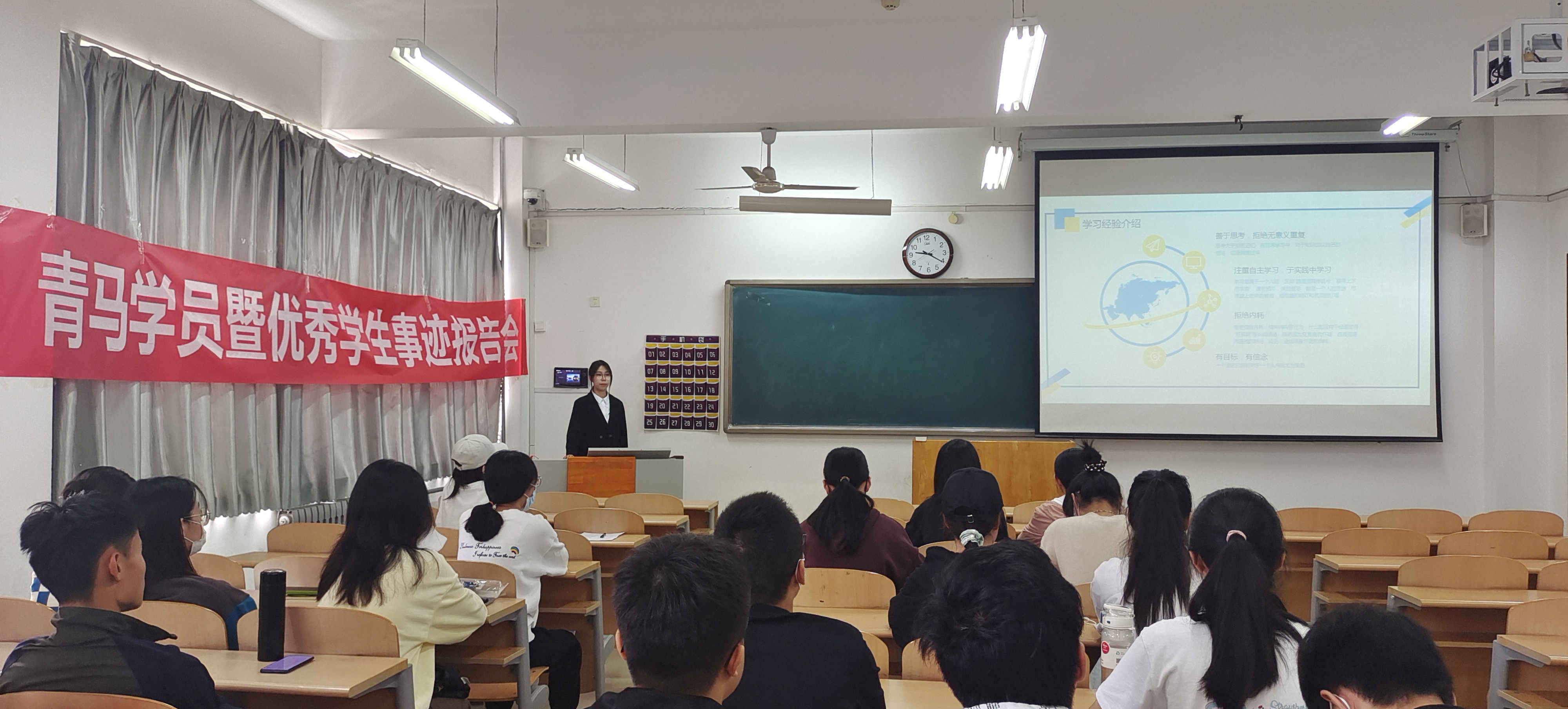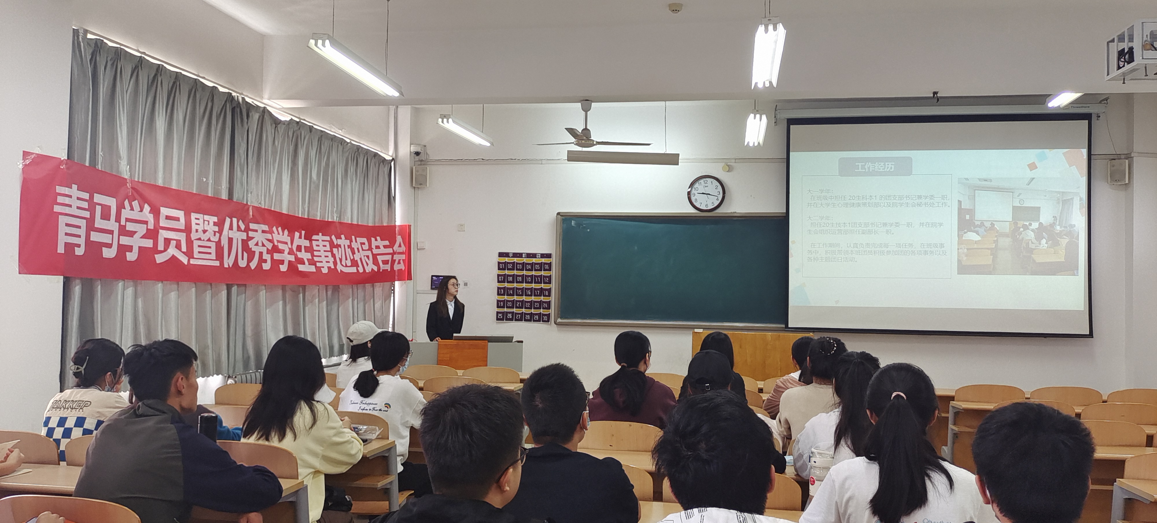 此次青马学员暨优秀学生事迹报告会,是我院“榜样力量报告会”的组成部分,目的在于充分发挥了优秀青年学生的示范和榜样作用,为我院同学找准自身定位、做好学业规划及今后学业的发展起到了借鉴意义,促进了学风建设和学生成长成才。
