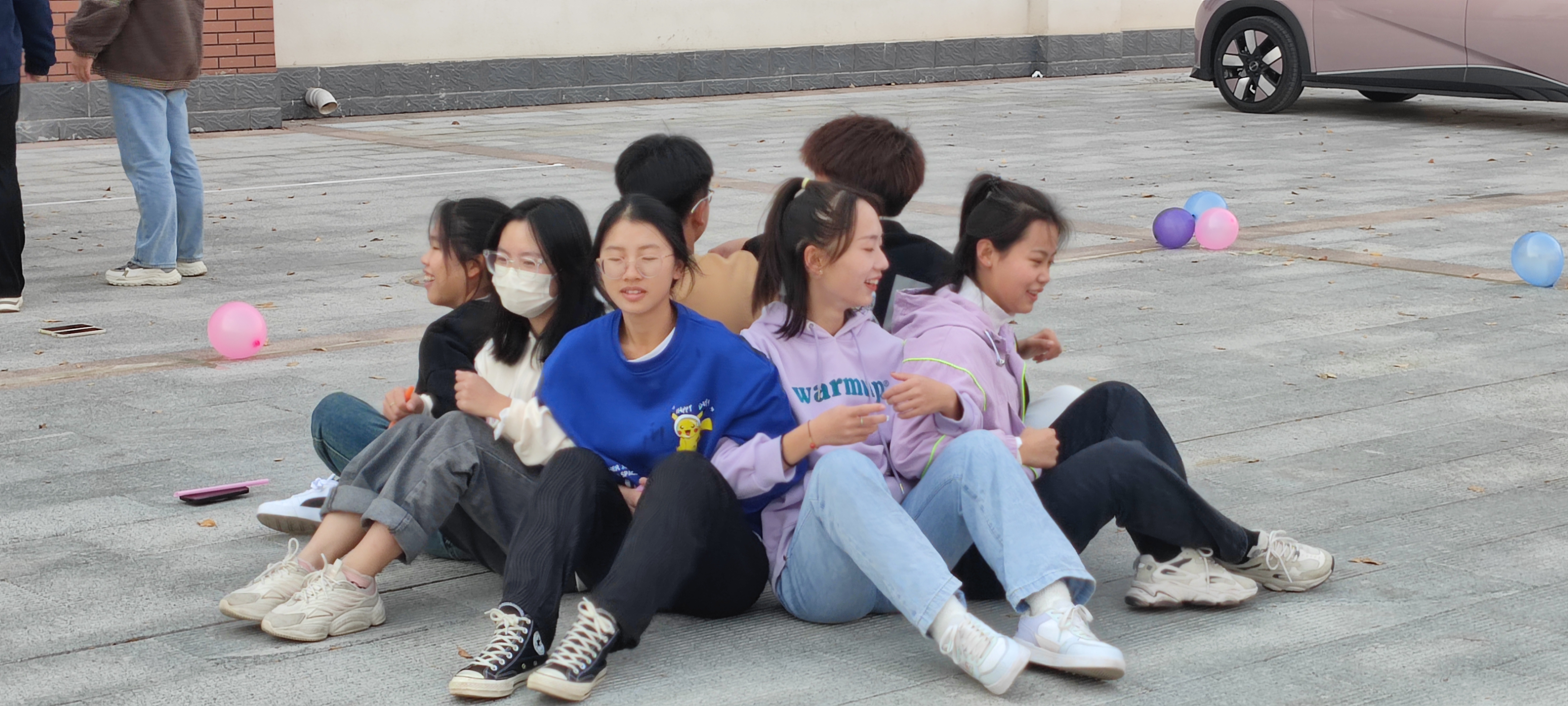 活动开始前各班学生自行组队,并为队伍取好队名。在工作人员的协助下,组织开展摸石过河、不到森林、吸管运输、坐地起身等系列游戏,在活动过程中,同学们热情高涨,积极参与,各团队团结协作、争先创优,大家一片欢声笑语,其乐融融。