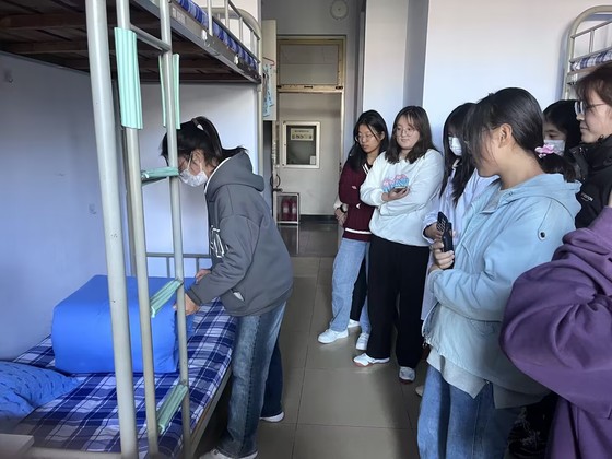 活动开始,各宿舍长在劳卫部的带领下,依次参观优秀宿舍整体内务环境。参观过程中,劳卫部成员向同学们介绍了优秀宿舍的标准和要求,包括物品摆放、床铺整理、被子叠放的规范。然后,由优秀宿舍的同学传授铺被叠放、内务整理的经验,热情解答了宿舍长们的提问。大家纷纷取经学习,表示此次活动收获满满。结束时,各宿舍表示对优秀宿舍的干净整洁和文化氛围佩服不已,也学习到了很多好的经验和做法。