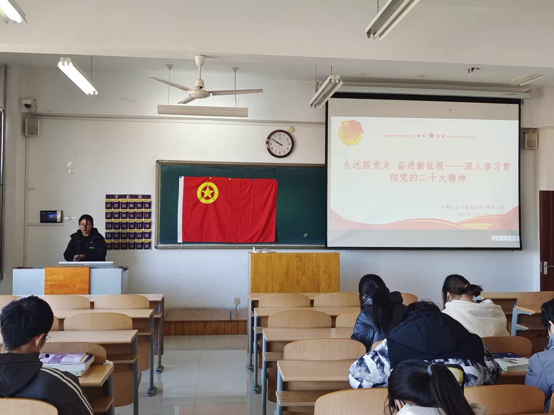 中国共产党第二十次全国代表大会在北京召开,为深入贯彻党的二十大精神,引导广大共青团员坚定不移听党话、跟党走,坚定理想信念,激发奋斗热情,11月我院团总支组织各团支部开展“深入学习贯彻党的二十大精神”主题团日活动。