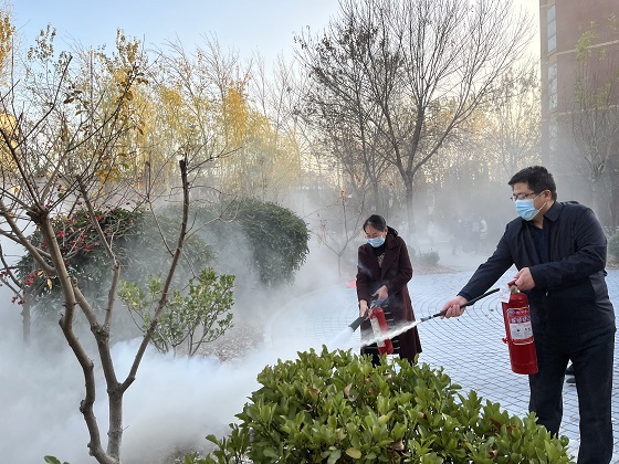 活动开始,赵望锋对此次培训目的和特邀人员进行了简单的介绍,之后由消防科科长杨玉杰对参赛人员进行消防知识培训。他向大家介绍我校消防设施和近年来的火灾情况,对我校火灾产生的原因进行了概述,引起同学们对消防安全的重视。火灾往往产生于大家不以为意的地方,于是他从消防安全常识讲起,用通俗易懂的语言,生动形象的案例,详细讲解了安全常识和火灾中的自救方法。为让同学老师们将所学知识内化于心,外化于行,保卫处工作人员李俊“趁热打铁”,向全体师生展示了如何正确使用灭火器,并组织全体师生进行实战操作。在李俊的指导下,师生们纷纷拿着灭火器上阵,体验了二氧化碳灭火器和干粉灭火器灭火。本次活动全体师生积极参与,认真聆听,取得圆满成功。