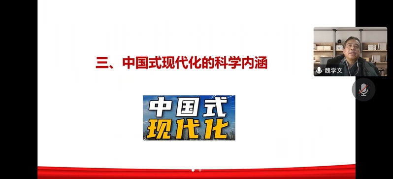 12月31日上午,生物与环境工程学院党总支通过线上方式举办学习贯彻党的二十大精神专题辅导报告会,学校理论宣讲团成员、马克思主义学院魏学文教授为学院师生作了题为《以中国式现代化全面推进中华民族伟大复兴——认真学习宣传贯彻党的二十大精神》的报告。学院280余名师生党员和入党积极分子参加报告会,学院党总支书记左之涛主持报告会。