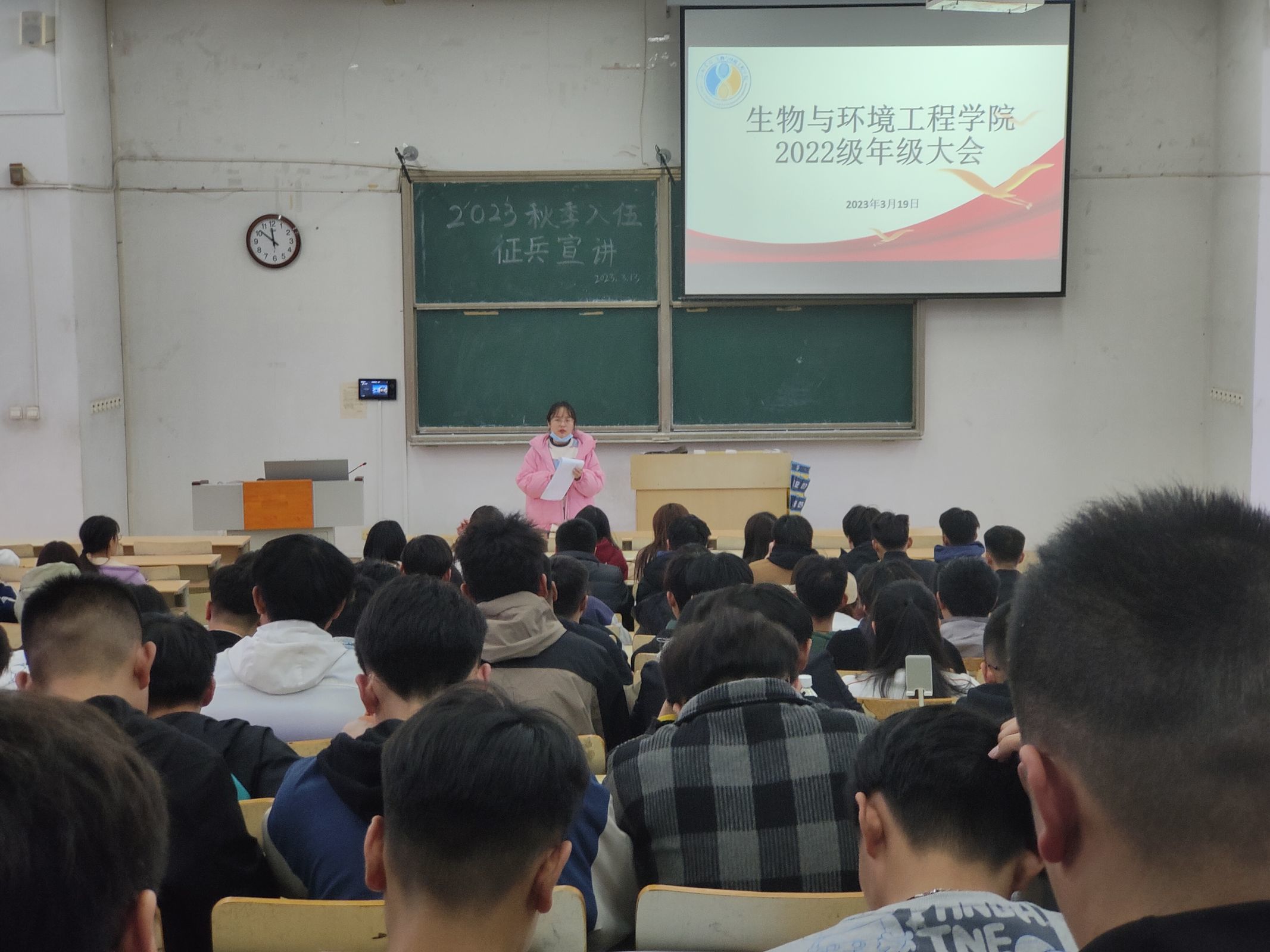 为了引导学生以国之务为己任,树立热爱学院学校的正确思想,加强学生的思想道德教育,3月19日,生物与环境工程学院在1号教学楼308召开2022级年级大会,此次会议由辅导员史戈主持,22年级全体学生参加。