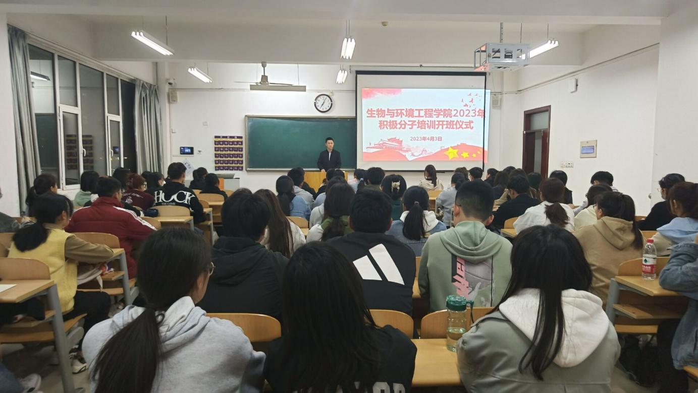 为加强学生党支部建设,4月3日,生物与环境工程学院2023年入党积极分子培训开班仪式在教学楼8号教学楼402教室正式举行。此次会议由学生党支部书记满强主持,全体入党积极分子参加。