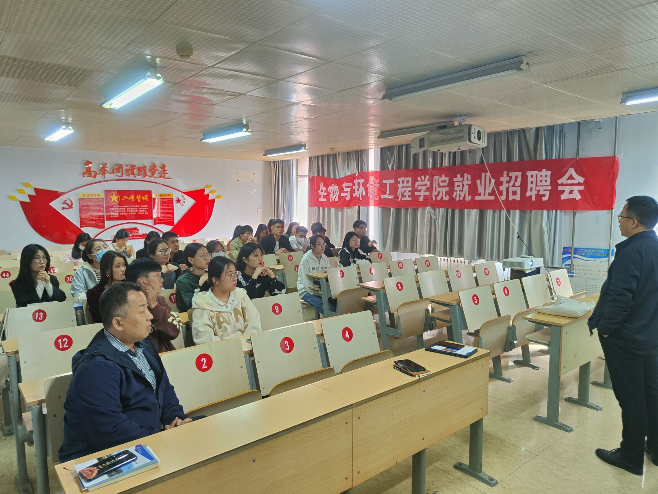 为进一步助力毕业生高质量就业,4月14日,生物与环境工程学院于实验中心于B7—311教室举行了黄海科学技术研究院招聘会。此次会议由学生科科长赵望锋主持,黄海科学技术研究院技术人力资源负责人主讲,20余名毕业学生参加。