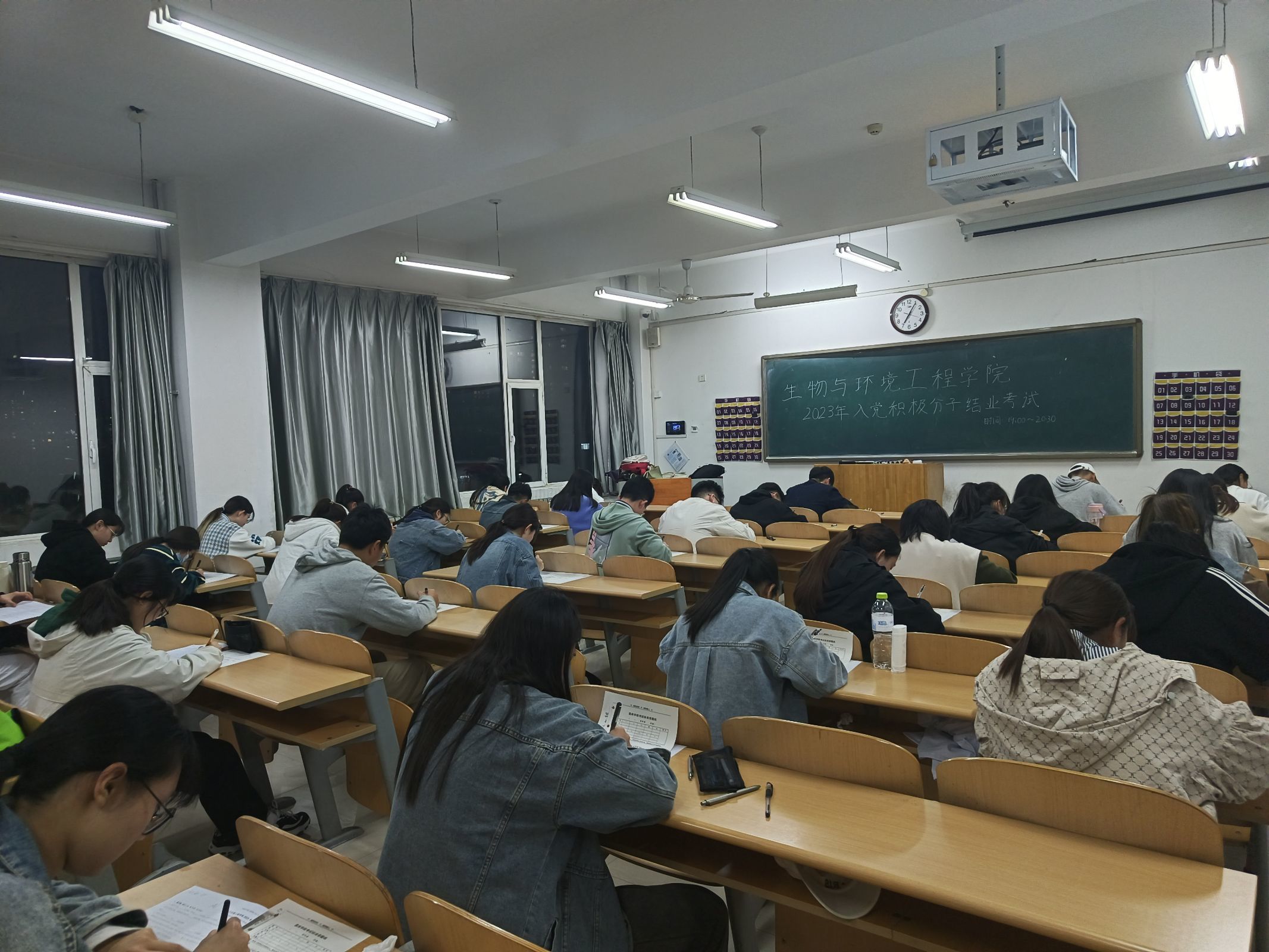 为进一步检验入党积极分子的学习情况,考察积极分子对党的基本知识的掌握程度。4月20日,生物与环境工程学院在8号教学楼401和402教室举行了入党积极分子结业考试。