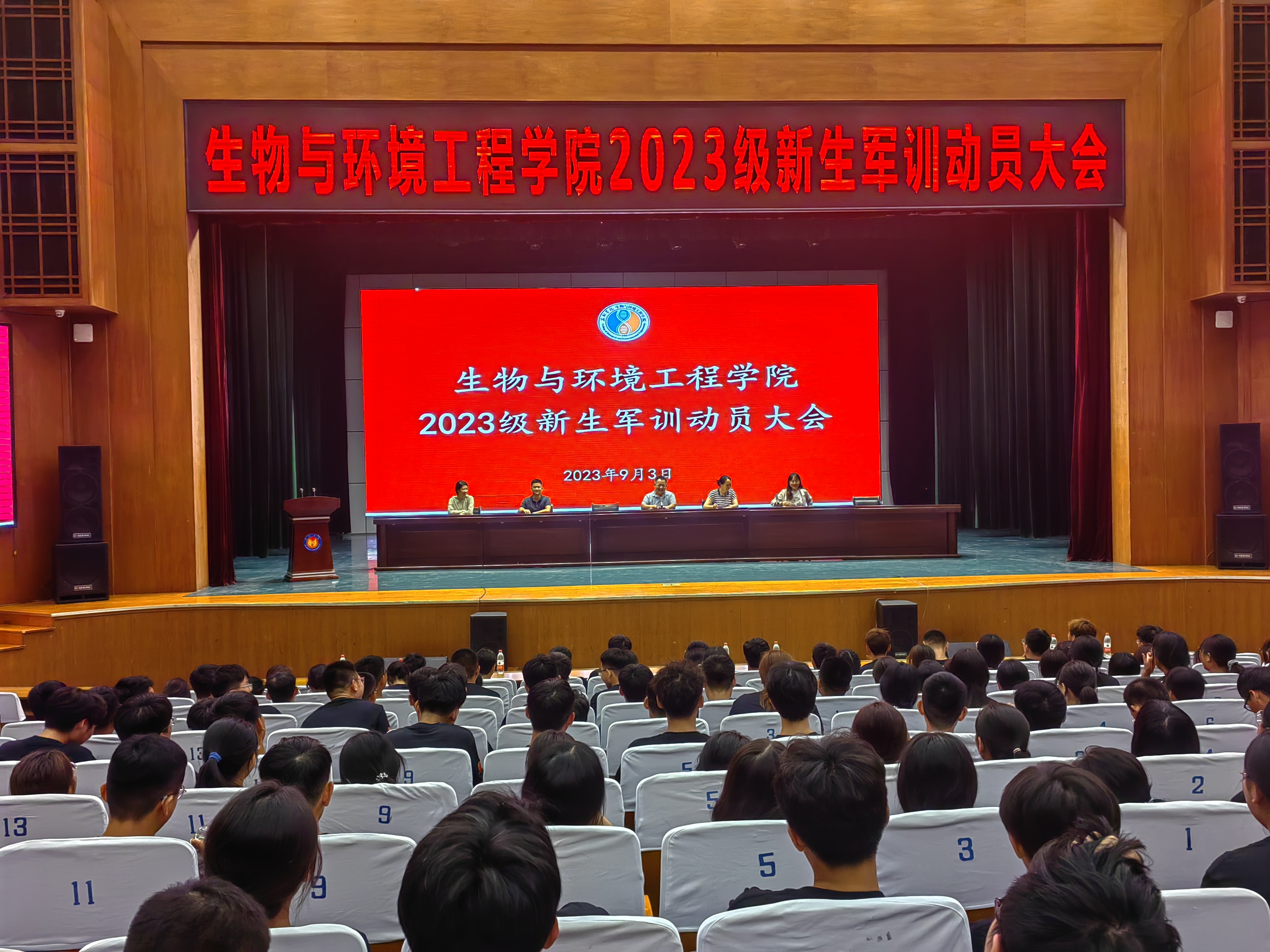 为帮助2023级新生了解军训的目的和意义,增强新组织纪律观念,9月3日,生物与环境工程学院在学苑会堂召开2023级新生军训动员大会,学生科长赵望锋老师主持,全体辅导员及2023级全体新生参与。