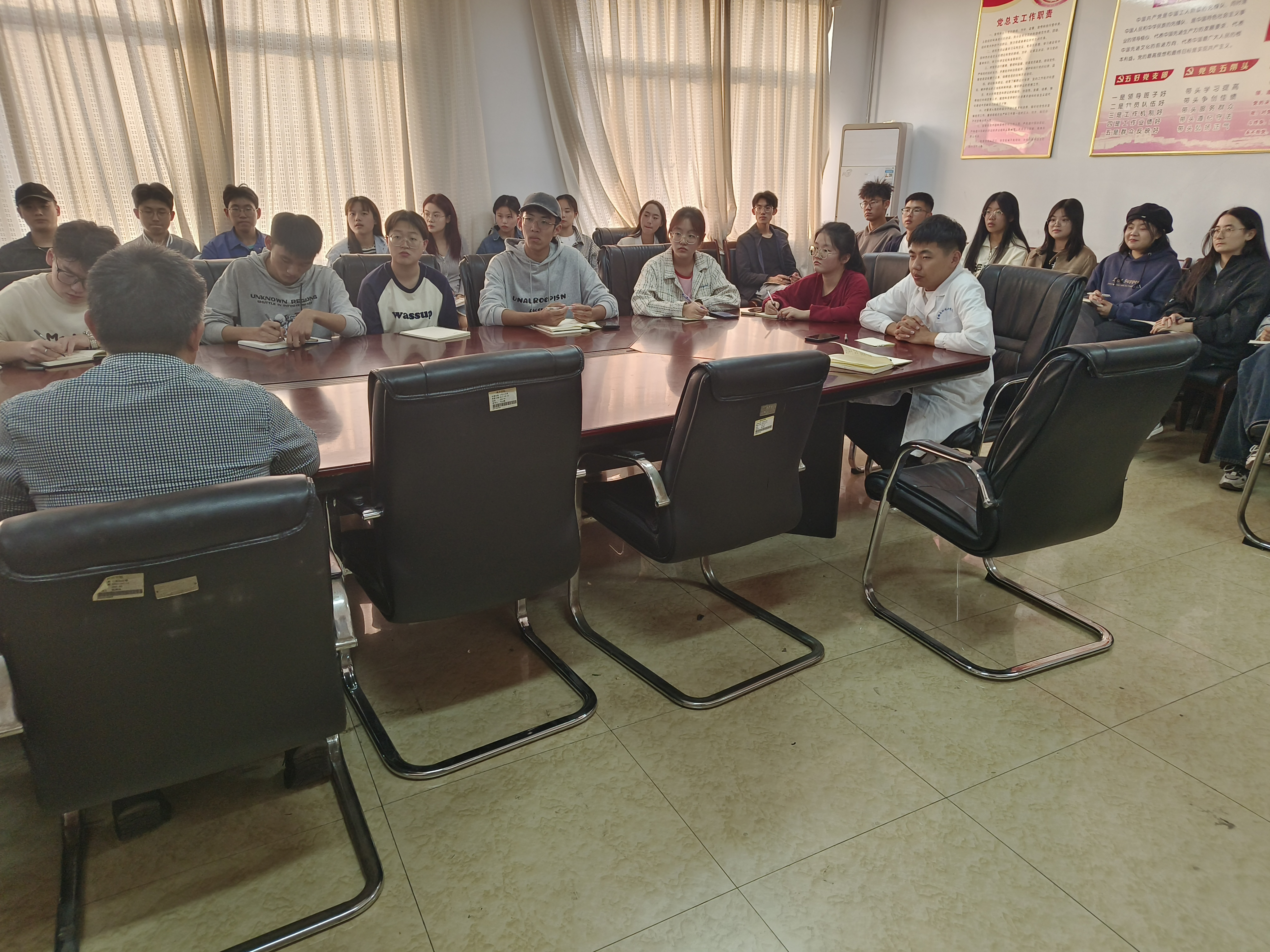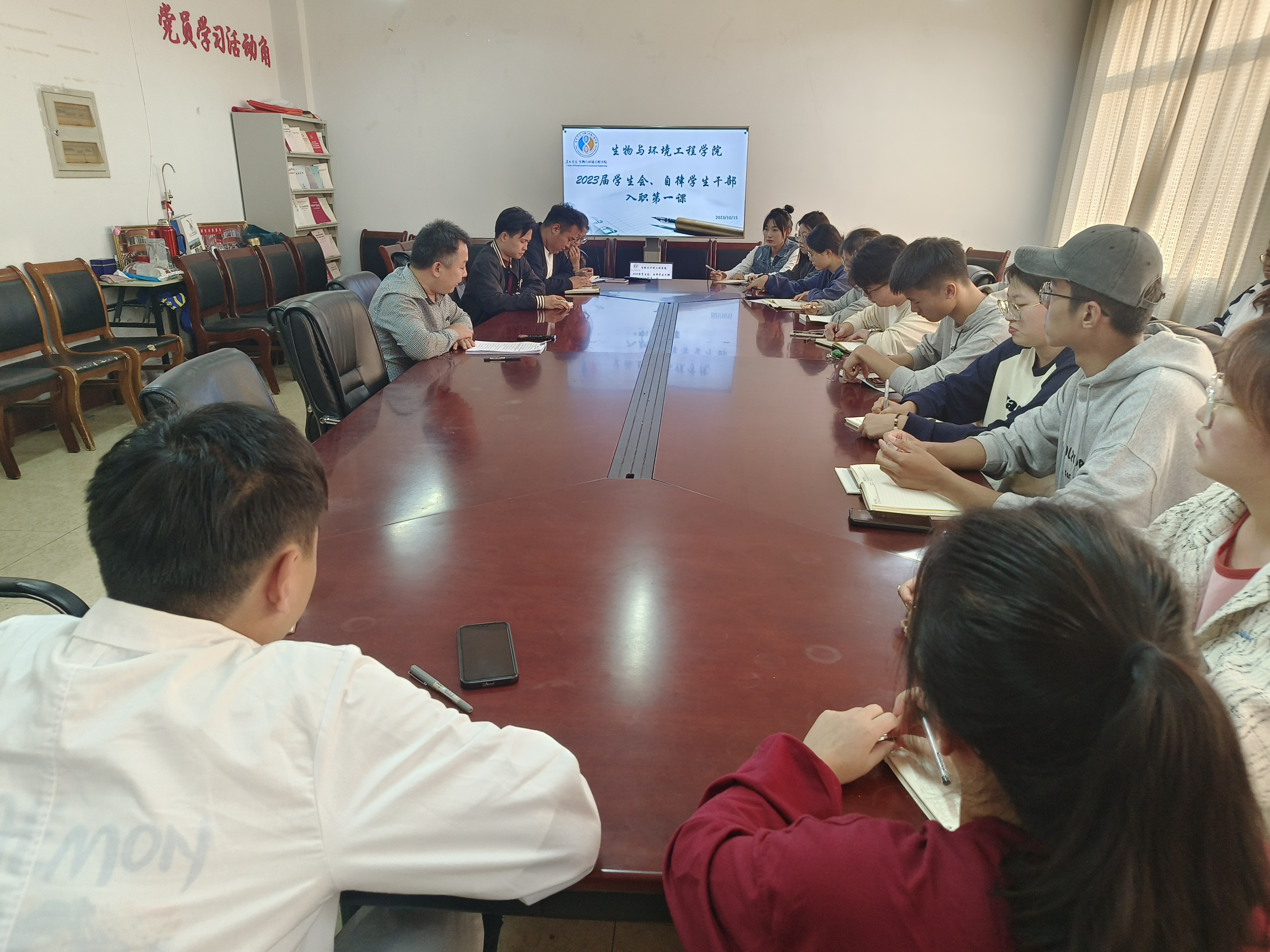 为高效完成新老学生干部工作对接,明确学生干部责任,2023年10月15日晚,生物与环境工程学院于实验楼B7-304室开展2023届学生会、自律学生干部入职第一课,团总支书记赵望锋主讲,2023届学生干部参加。