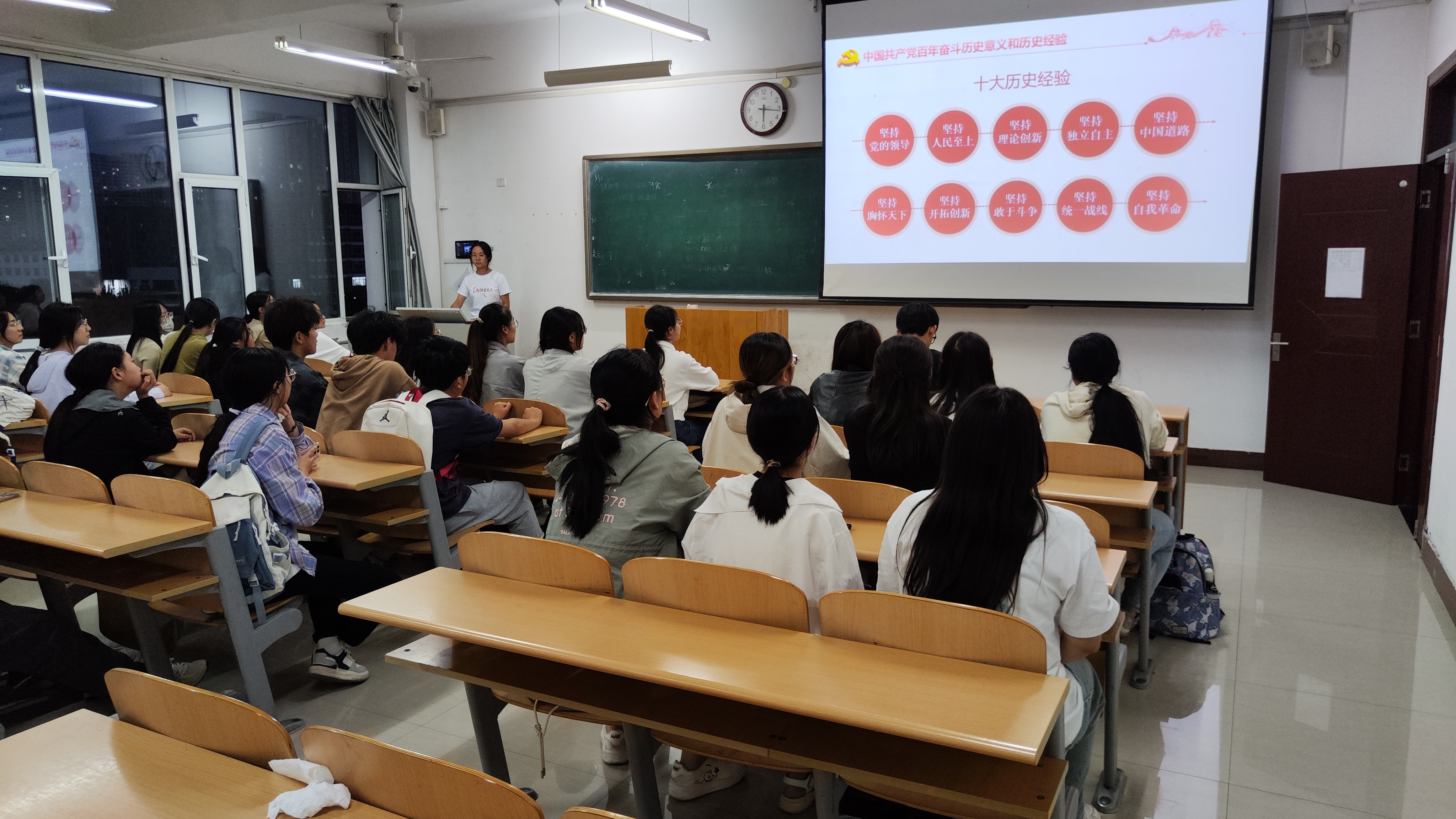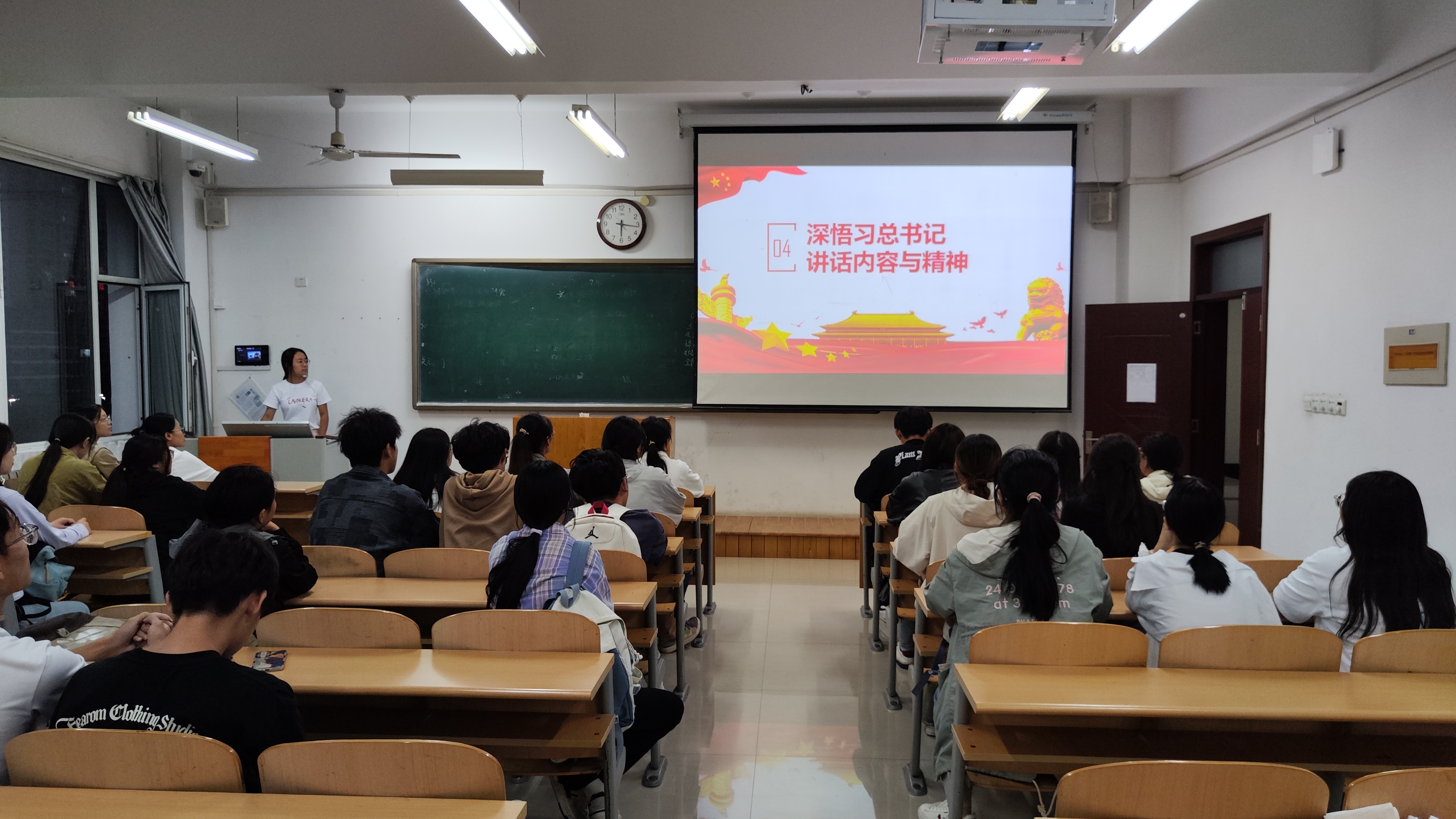会议开始,团支书高雪峰播放视频,带领同学们一起学习习近平总书记重要讲话精神的内涵。团支书重点宣讲了习近平新时代中国特色社会主义思想,引导团支部团员青年更加深刻领悟“两个确立”的决定性意义,增强“四个意识”、坚定“四个自信”、做到“两个维护”,争做习近平新时代中国特色社会主义思想的坚定信仰者和忠实实践者。随后,团支书组织观看爱国主义教育电影《古田军号》,通过电影重温了老一辈革命家的英雄事迹,强化了民族自豪感,增强为社会、国家建设贡献青春力量的主人翁精神。