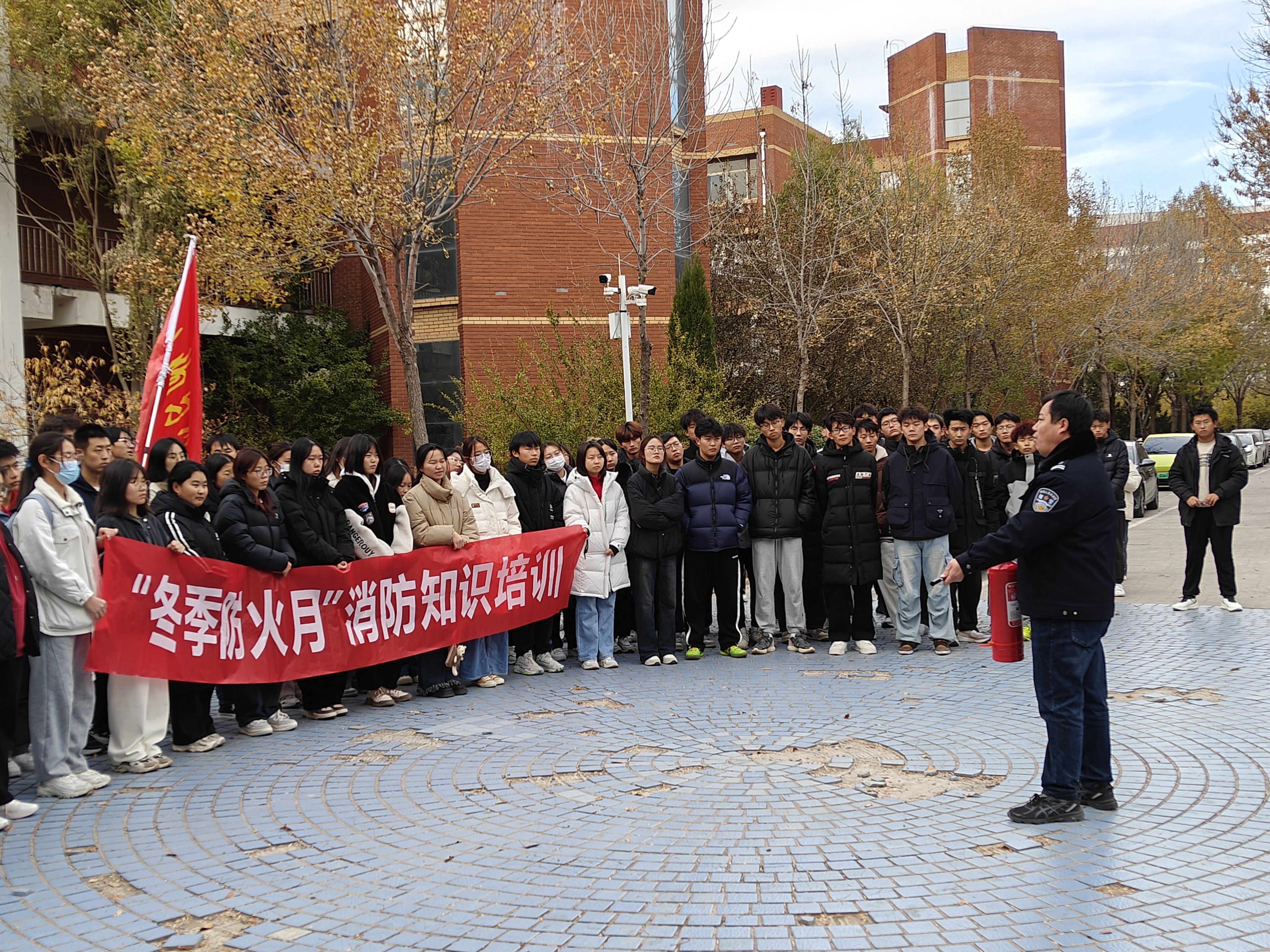 活动开始,赵望锋老师首先强调了冬季火灾发生的危害性以及预防火灾的重要性,提醒同学们要牢固树立好防火的意识,掌握防火的技能。然后,保卫处消防科杨玉杰科长进行了现场授课,他强调,冬季干燥容易引发火灾,要提高防火意识,远离火灾隐患,结合学院特点,强调了在实验楼内的各种安全隐患种类以及处置方法。他结合我校和各大高校的实际案例,讲解了火灾的危害性,强调从细微之处防患于未然,尤其是在宿舍内要做到不违规用电,不使用大功率电器,及时清除在阳台上的易燃杂物,严格做实做细防火措施。希望每个人都承担起消防安全的责任,积极配合消防安全隐患排查的工作。最后,杨玉杰老师向同学们展示了如何使用灭火器,并且指导每位同学亲自操作,使每位同学都掌握了对灭火器使用方法。