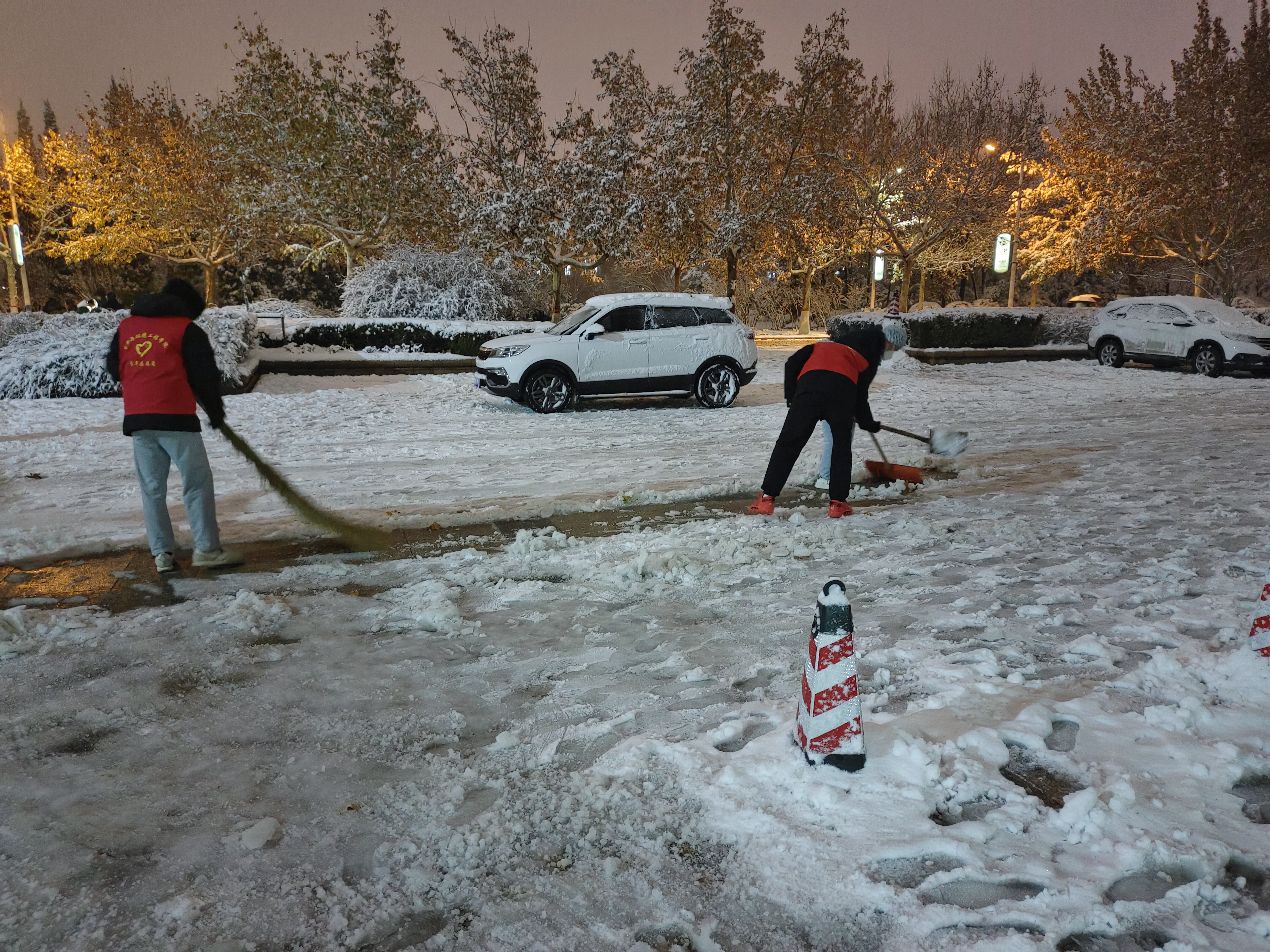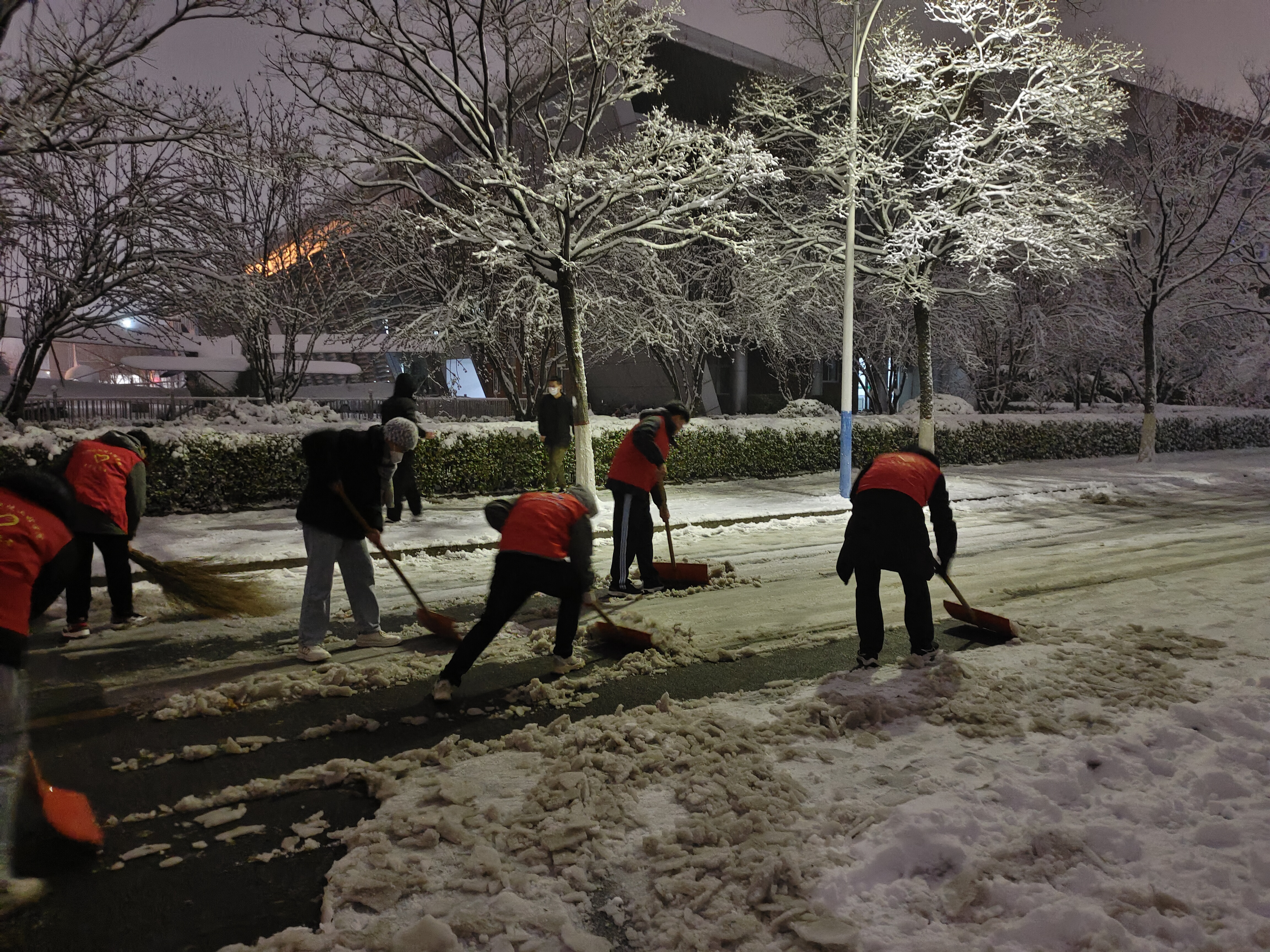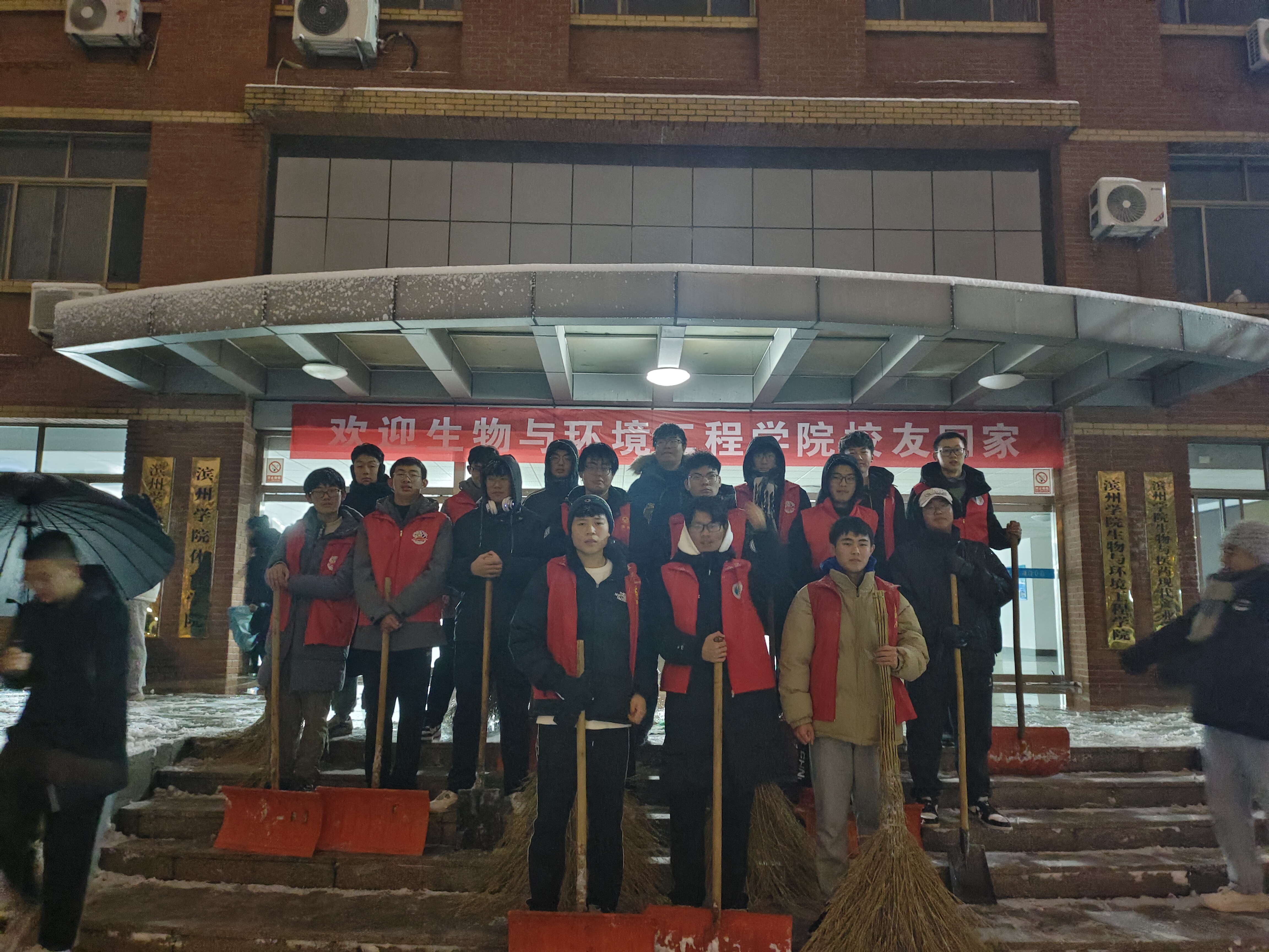 12月14日,滨州市迎来了强降雪天气,校内道路被积雪覆盖,给师生们带来了许多不便的影响。为保障师生在出行路上的安全,激发学生们的劳动活力和志愿热情,生物与环境工程学院于2023年12月15日一17日在探幽路、实验楼西广场和楼南小路举行了“铲雪除冰,情暖寒冬” 志愿服务活动。党员、学生干部、共青团员们近百人参加。