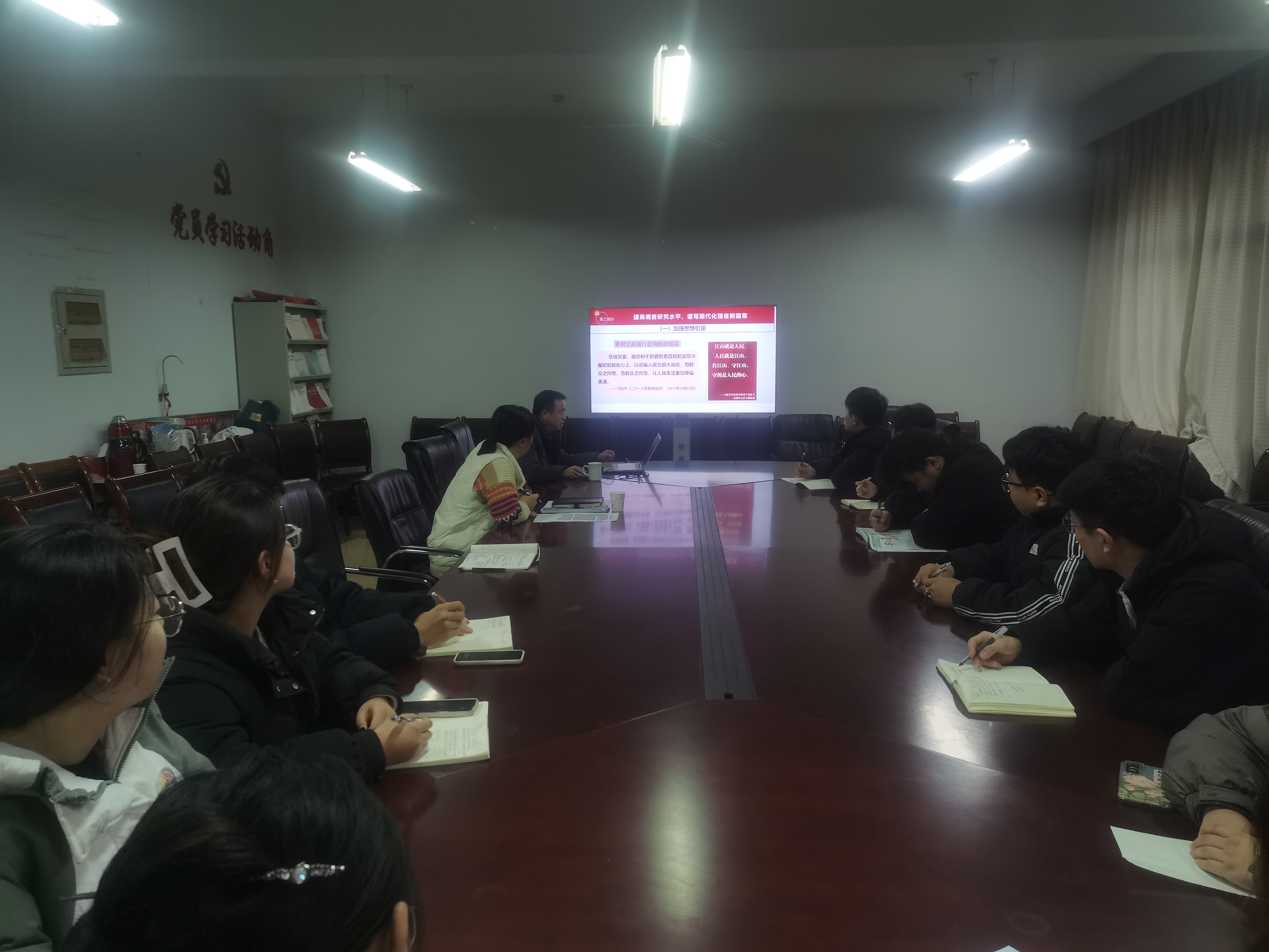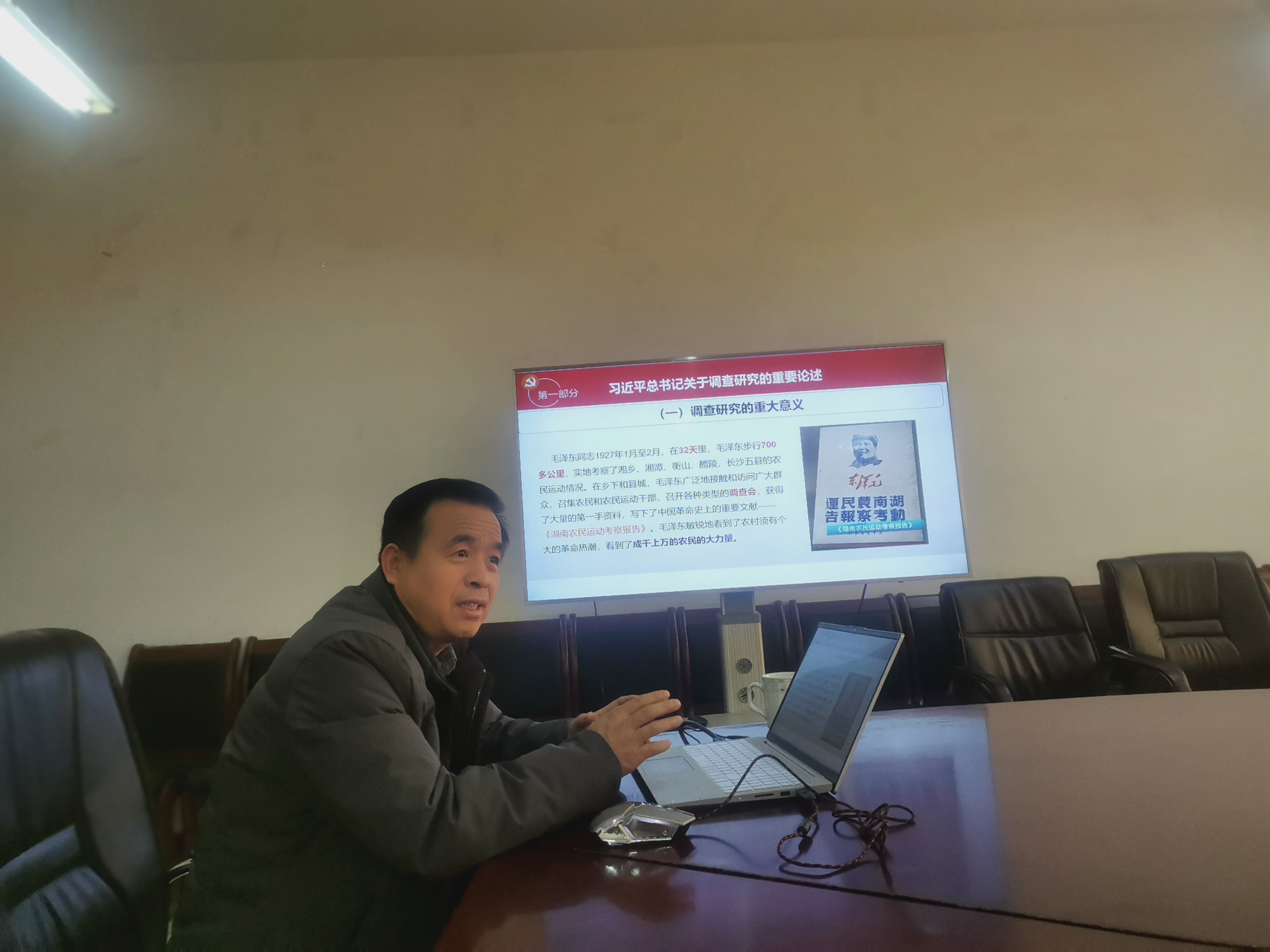 12月19日,生物与环境工程学院党总支举办学习贯彻习近平新时代中国特色社会主义思想主题教育专题党课,邀请我校马克思主义学院教授、理论宣讲团专家魏学文教授以《大兴调查研究,建设现代化强省》为题作辅导报告。学院教师党员、学生党员和入党积极分子代表共同参加学习,在深思细悟中感悟思想伟力,汲取奋进力量。