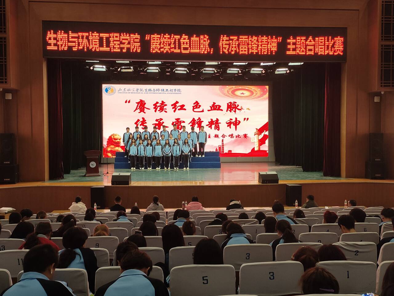 为响应“学习雷锋月”的号召,传承红色文化,弘扬民族精神,激发学生爱国主义情感,3月16日生物与环境工程学院于学苑会堂开展“赓续红色血脉,传承雷锋精神”歌唱比赛,2022级、2023级全体同学参加。