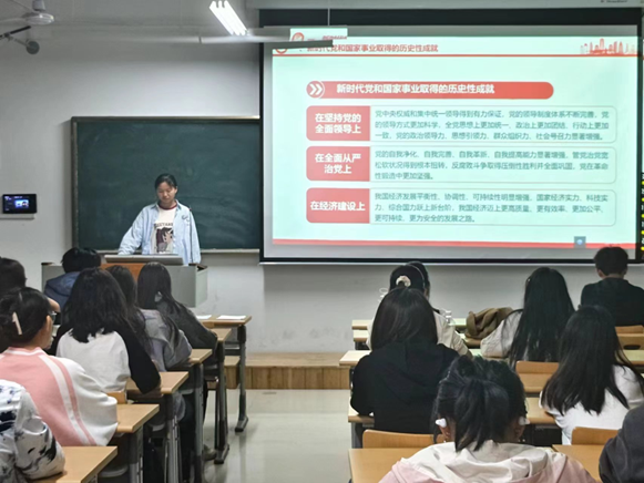 活动开始,团支书点明中国特色社会主义思想的核心要义,学习新时代党和国家事业取得的历史性成就、深刻领悟“两个确立”的决定性意义,增强“四个意识”、坚定“四个自信”、做到“两个维护”,自觉用党的二十大精神统一思想和行动,不断增进对党的创新理论的政治认同、思想认同、理论认同、情感认同。接着,团支书组织同学们积极表达自己的心得体会,发表自己对于党的二十大精神的看法,认为青年应从新思想中汲取力量,夯实思想根基,坚强精神核心,做到思想之先进、信仰之坚定、精神之强健。