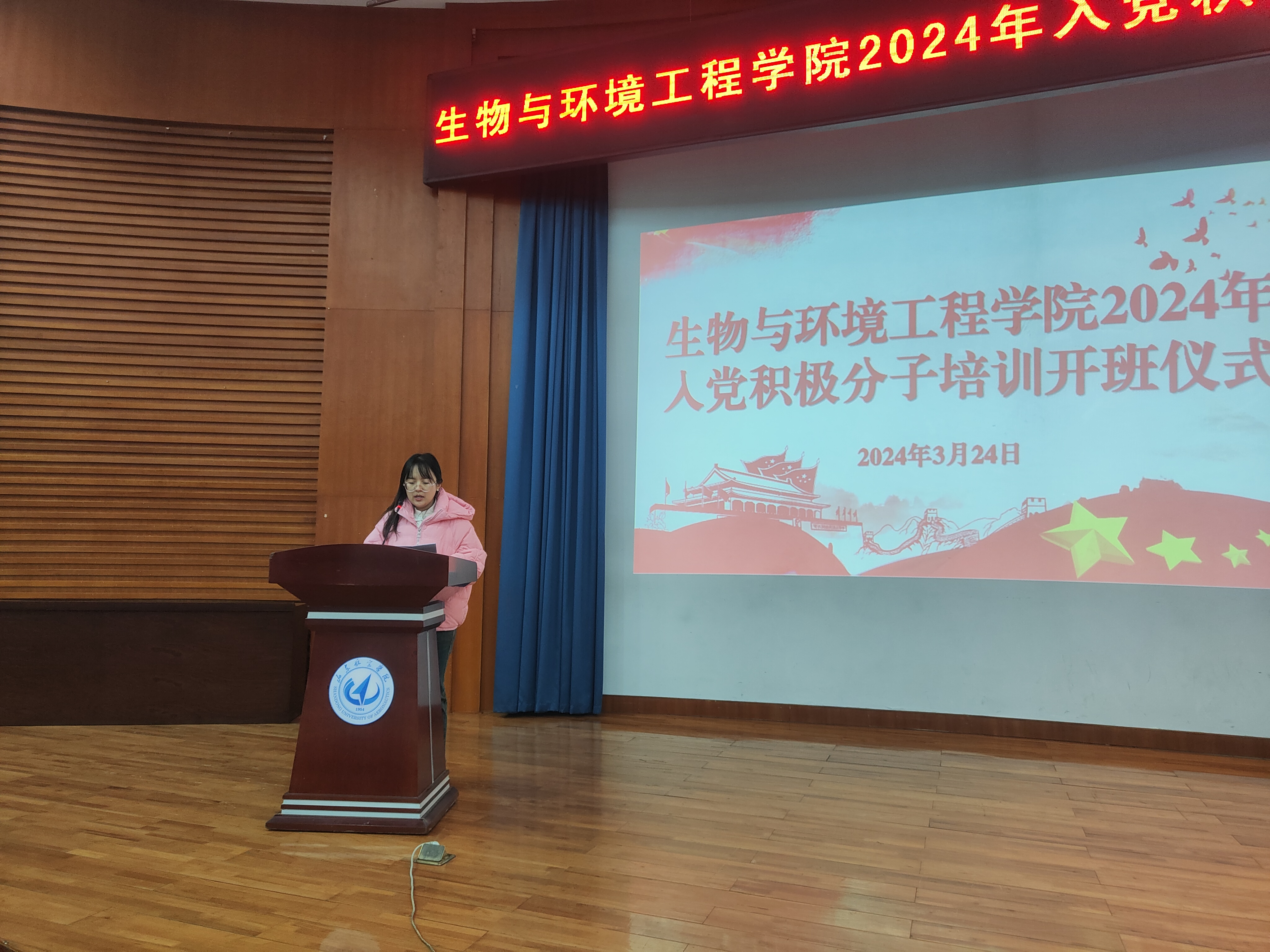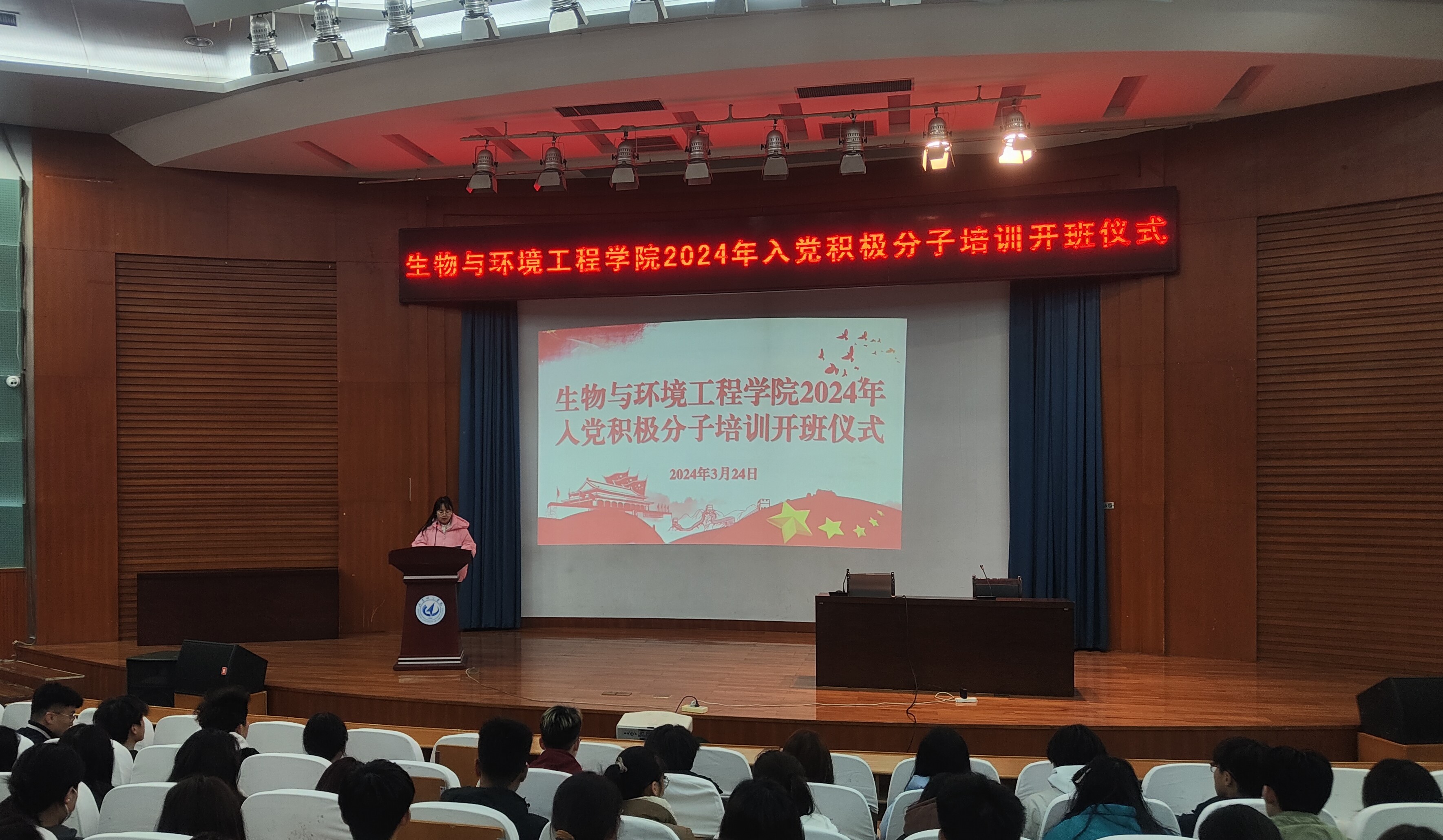 为深入学习宣传贯彻落实习近平新时代中国特色社会主义思想和党的二十大精神,全面落实新时代党的教育方针,把好党员发展“入口关”,结合学校《关于做好2024年入党积极分子培训工作的通知》的要求,2024年3月24日19:00,生物与环境工程学院于明德报告厅举行2024年入党积极分子培训开班仪式。学院党总支书记李炳斋、党总支副书记时芸,学生科满强、周建芳、史戈老师参加此次开班仪式,辅导员史戈主持开班仪式。