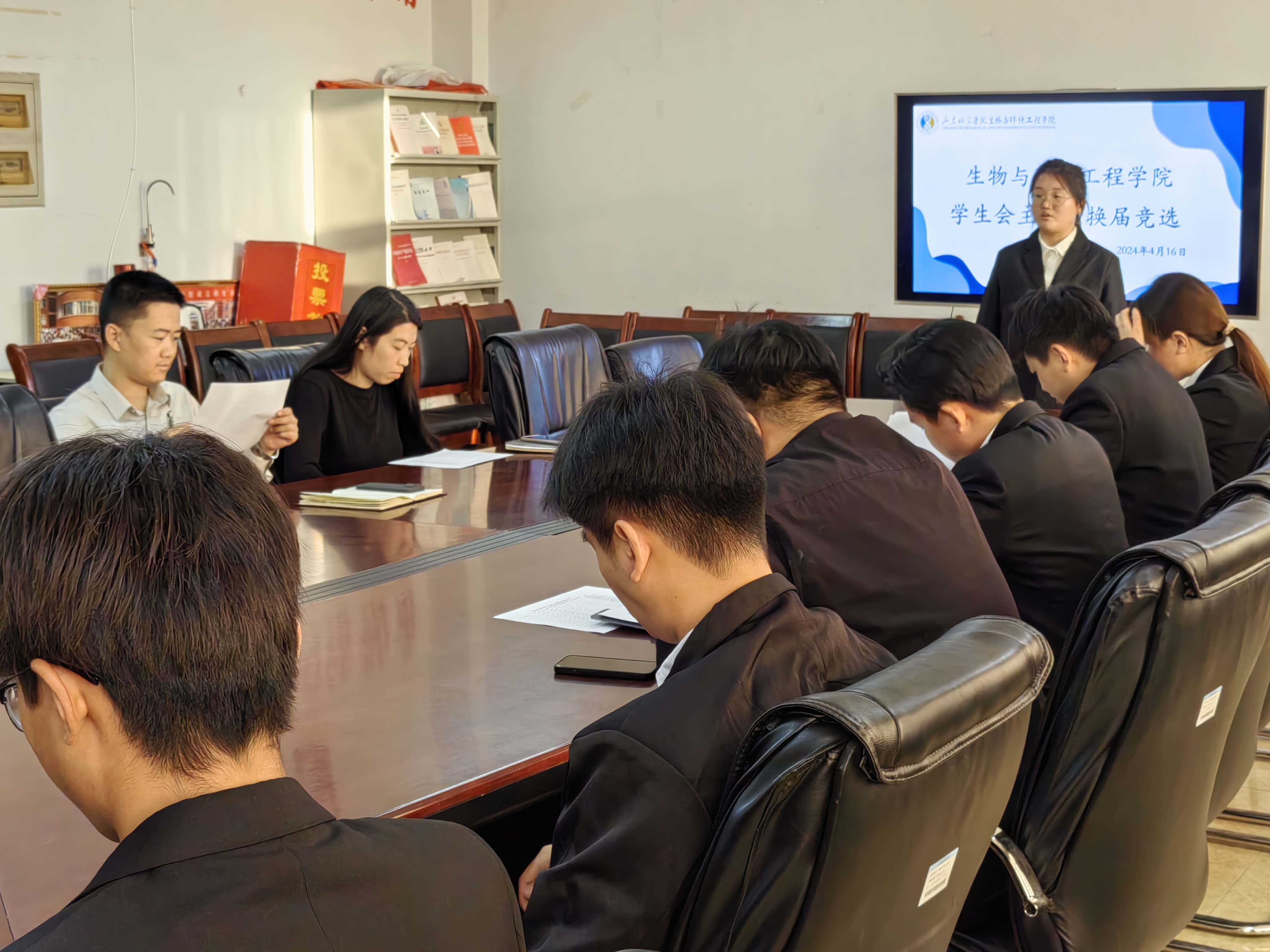 为选拔出有能力、有热情、有担当的候选人,为学生会、自律督导中心注入新的活力,推动学院工作的顺利开展。生物与环境工程学院于4月16日在b7-304举行学生会、自律督导中心主席团候选人竞选。本次活动辅导员满强、史戈、周建芳出席,主席团王亚菲主持,主席团全体成员,2022级、2023级部分同学参加。