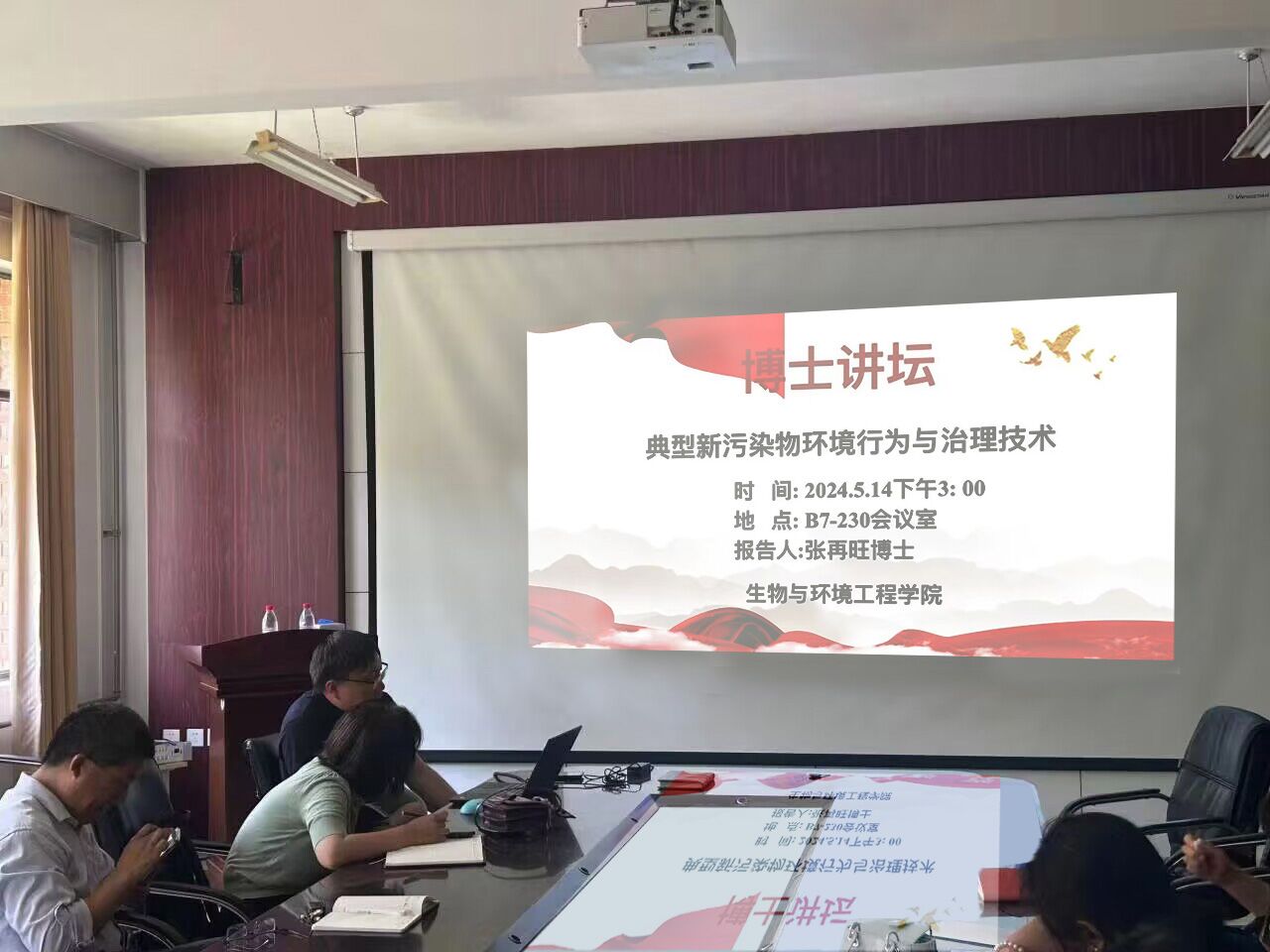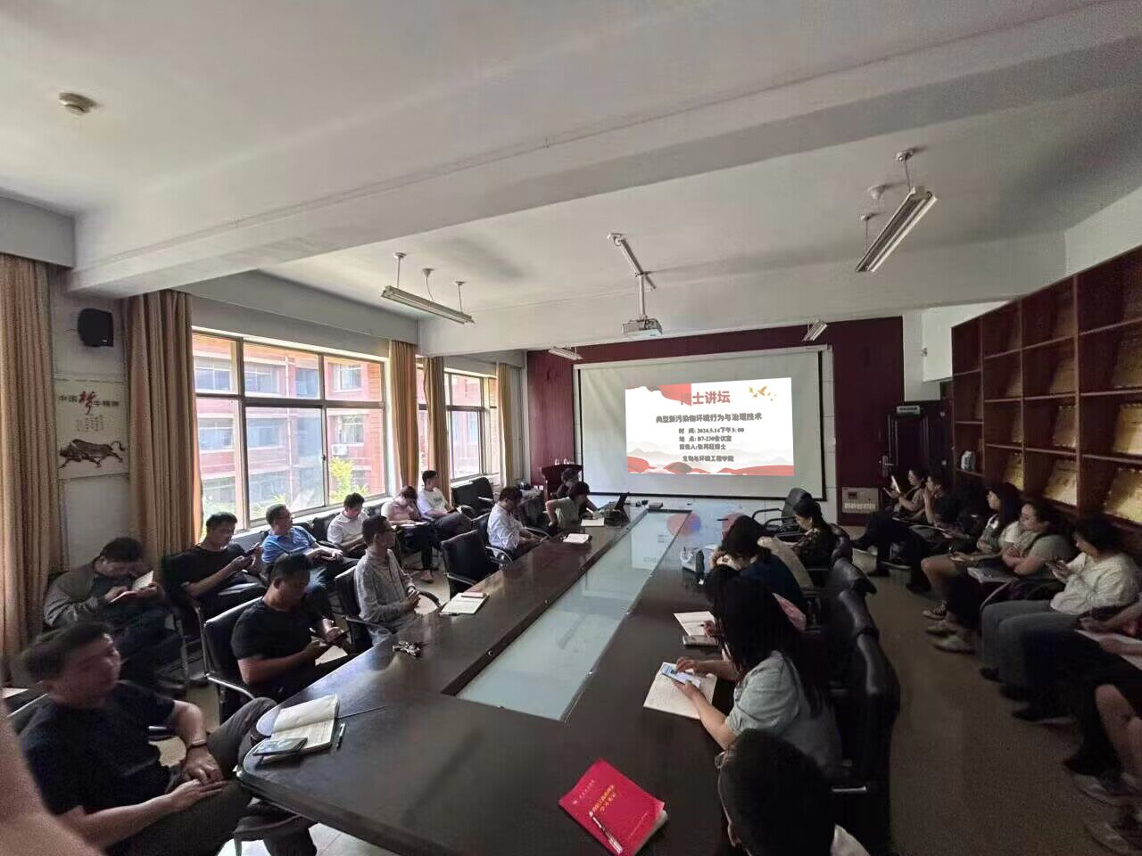 英国365集团公司生物与环境工程学院于2024年5月14日下午两点半在实验中心B7-230会议室举办博士论坛,论坛主题是典型新污染物环境行为与治理技术,由张再旺博士作报告,学院四十名师生代表参与。