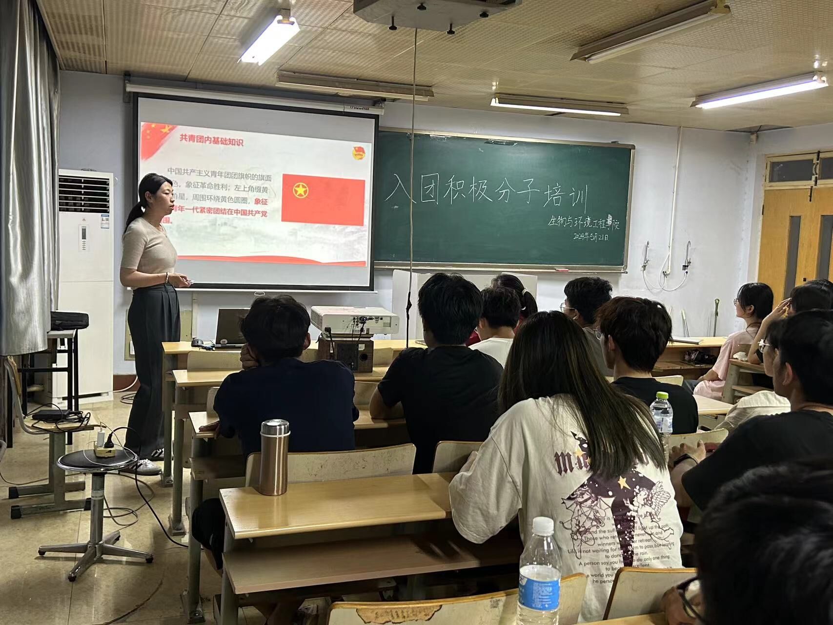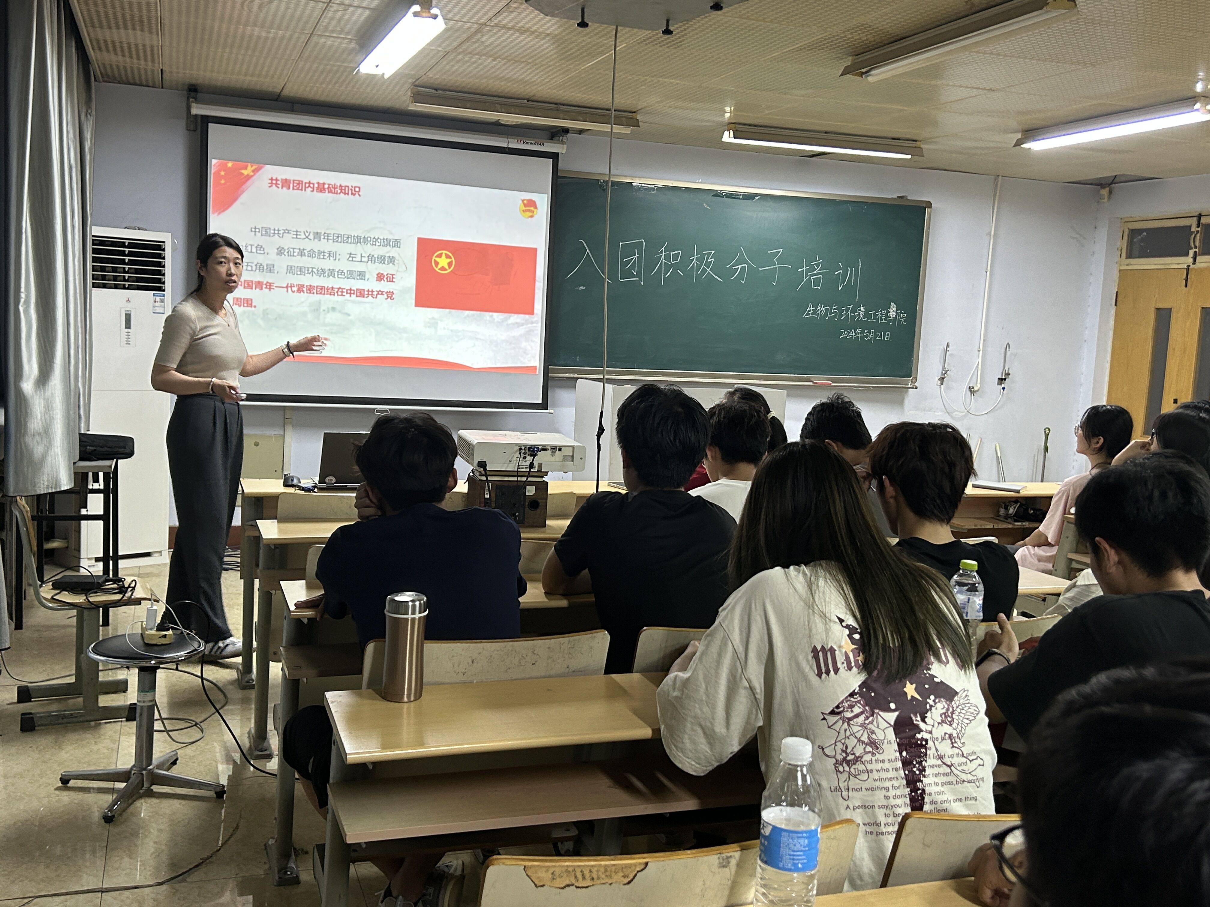 培训中,周建芳老师从团徽,团员证,团旗等方面向同学们科普共青团内基础知识,随后从共青团的发展历程、重大历史事件、会议以及在不同历史时期所发挥的作用等方面,进行了全面而深入的讲解,让入团积极分子们深刻感受到了共青团一百多年来波澜壮阔的历程和不懈奋斗的精神。周建芳老师表示,此次培训是学院加强青年思想政治教育、推进共青团工作的重要举措之一。希望入团积极分子树立正确的世界观、人生观和价值观,积极参加志愿服务活动,为培养德智体美劳全面发展的社会主义建设者和接班人贡献力量。