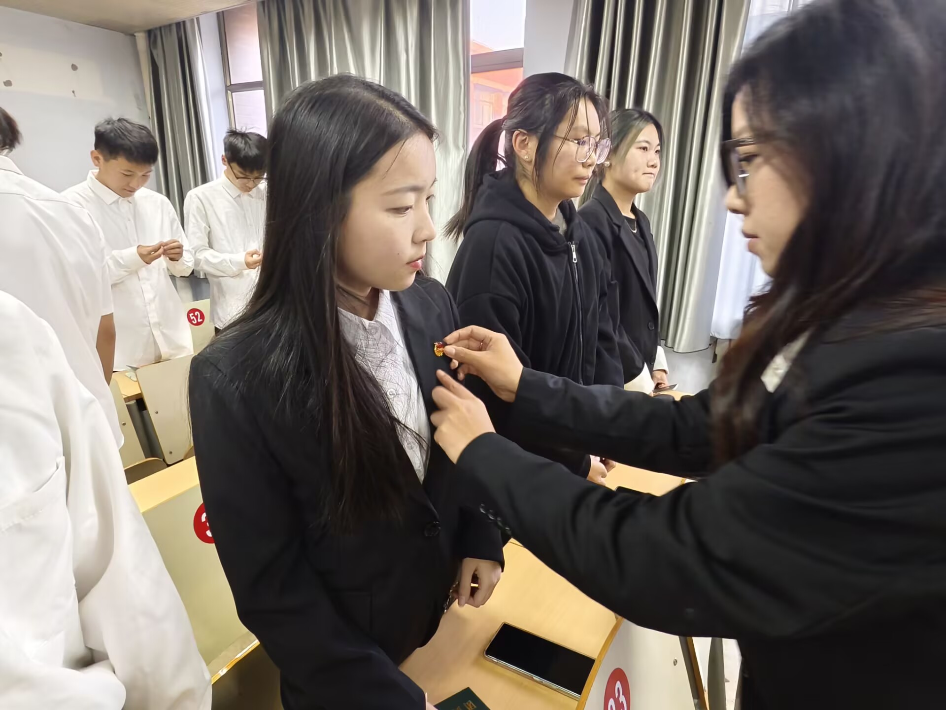 仪式伊始,全体师生起立,奏唱中华人民共和国国歌。周建芳老师简要说明了入团仪式的意义,并宣布了新团员名单。随后,党员代表逐一为新发展团员颁发团徽和团员证,这象征着荣誉与责任的传递。新发展团员郑重接过,将团徽佩戴于左胸前,标志着他们正式成为共青团的一员,肩负起新的历史使命。在宣誓环节,优秀团员代表崔桂荣同学引领新发展团员面向团旗,庄严宣誓。誓言铿锵有力,表达了新发展团员对共青团的忠诚与热爱,也将成为他们前行路上的精神灯塔。宣誓后,入团介绍人代表杨金月宣读了《中国共产主义青年团章程》中关于团员义务和权利的条款,明确了团员的责任与担当。新发展团员代表李月凝同学发言,她表示将严格以团员标准要求自己,积极投身社会实践和志愿服务,为集体荣誉和社会进步贡献力量。优秀团员代表崔桂荣同学分享了自己的感悟,鼓励新发展团员们积极投身中国特色社会主义事业,实现个人价值与社会价值的统一。团总支书记满强特别强调,团组织肩负着培养新时代青年、引领青年投身社会主义现代化建设的重任,期望新发展团员能够在团组织的培养下茁壮成长,为实现中华民族伟大复兴的中国梦贡献青春力量。最后,全体人员起立,奏唱中国共产主义青年团团歌,为本次仪式画上圆满句号。