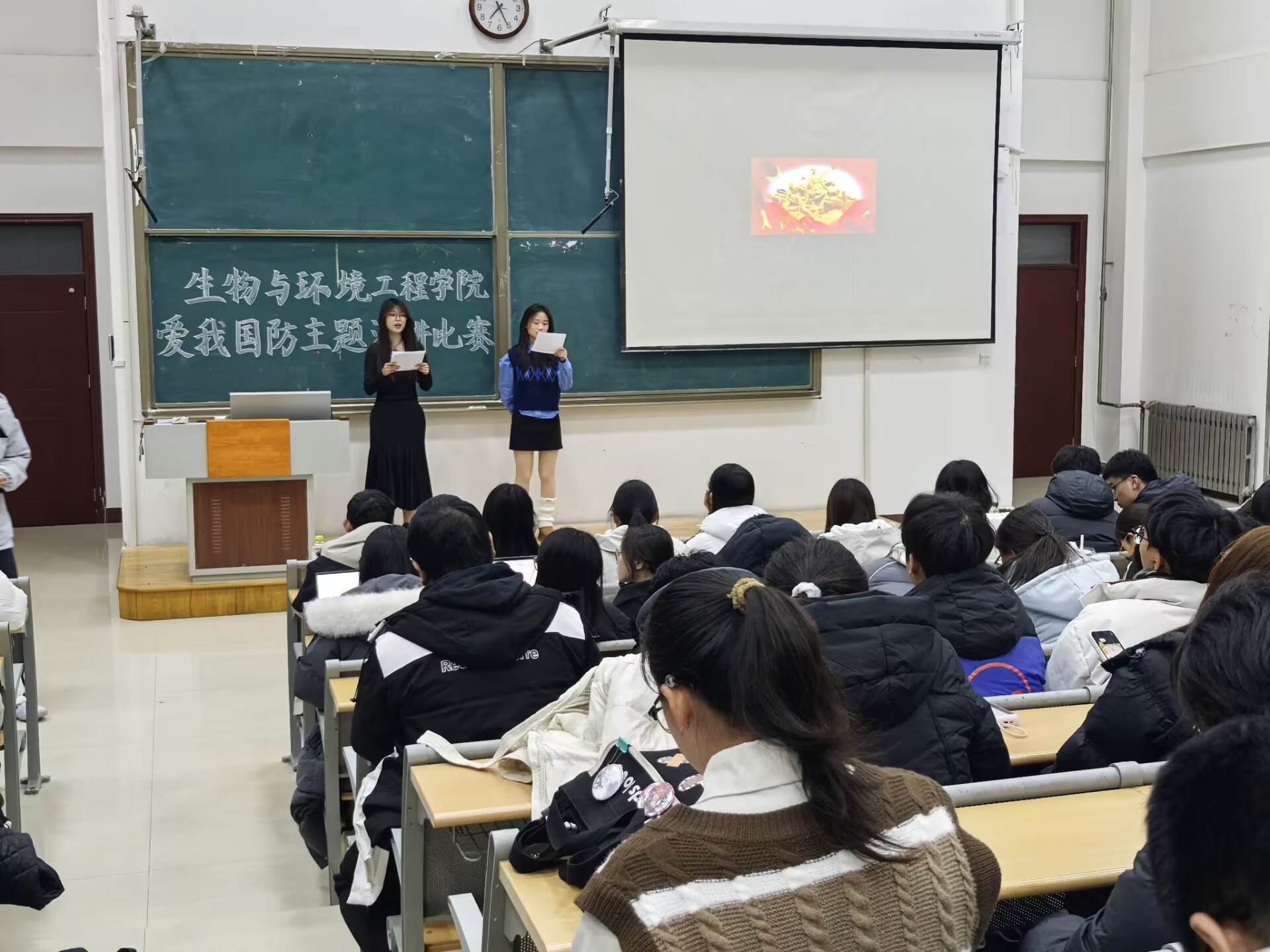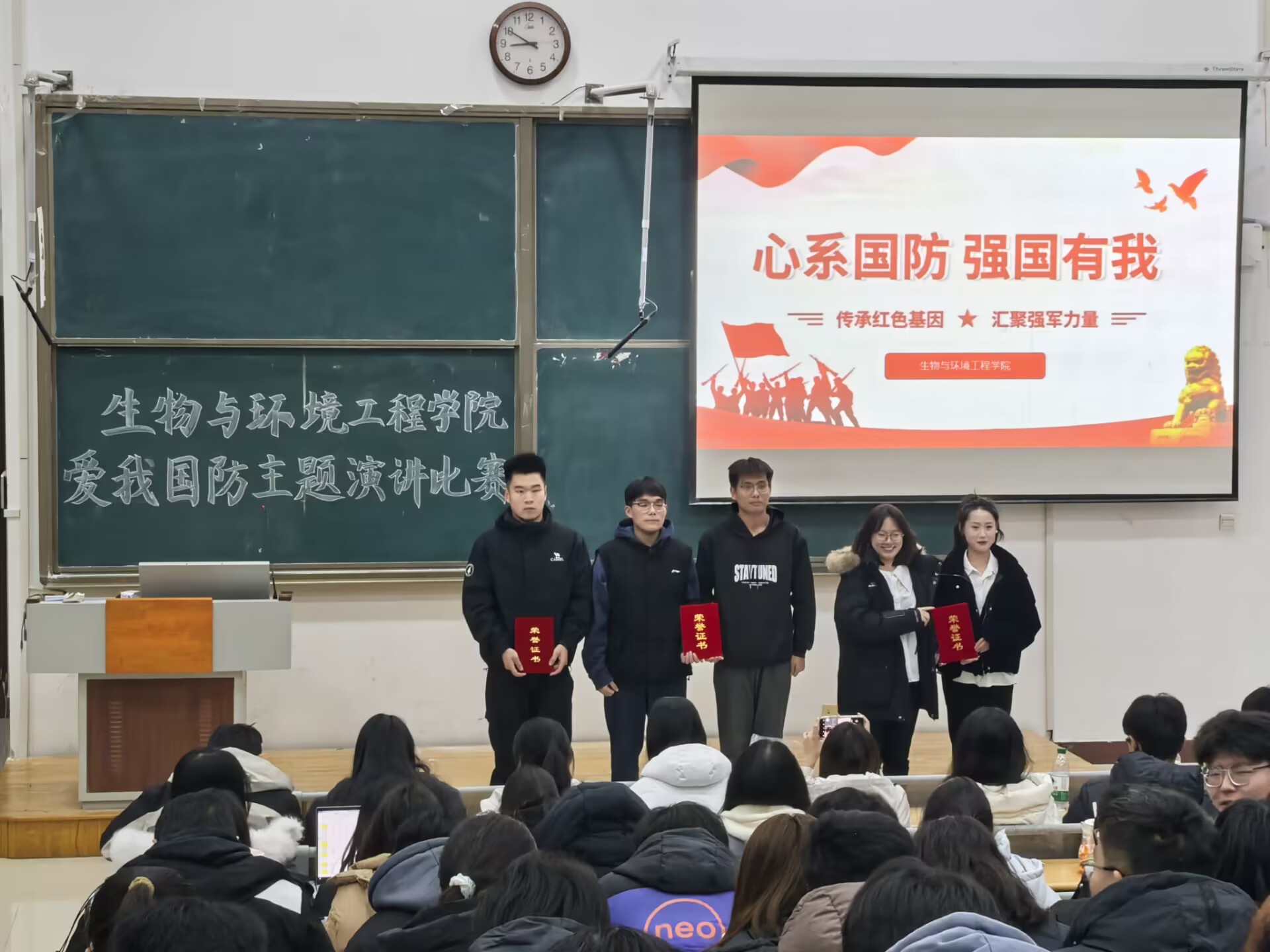 为了在校园中深入普及国防安全教育,点燃同学们潜在的演讲热情,展现个人青春风采,11月26日晚,生物与环境工程学院在8教305成功举办了一场别开生面的国防安全主题演讲比赛。此次活动吸引了24级全体同学现场观摩,参赛选手们以卓越的表现展示了深厚的国防安全知识底蕴,更以激情洋溢的即兴演讲,为在场的每一位听众献上了一场精彩绝伦的思想盛宴。