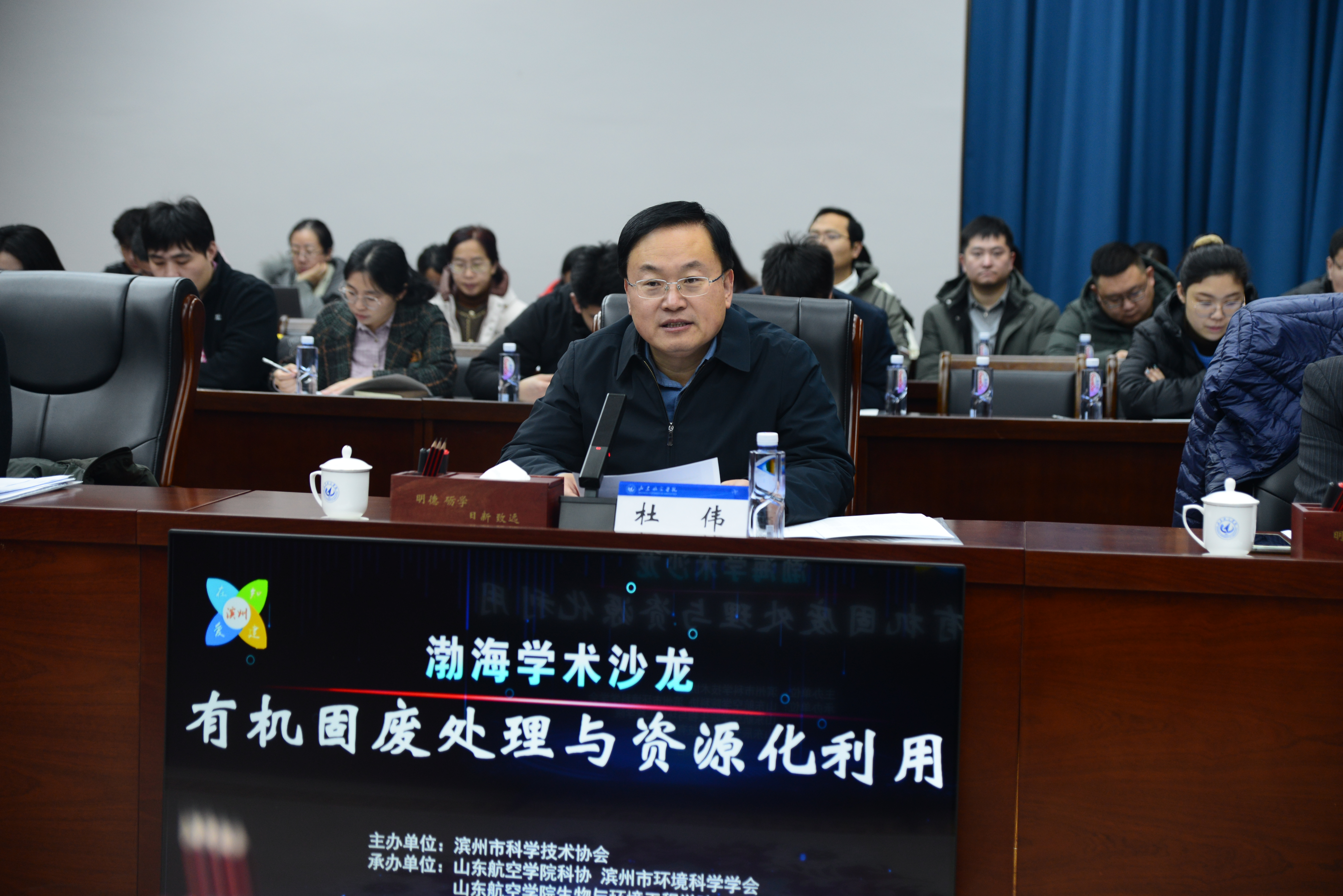 12月20日上午,由滨州市科学技术协会主办,我校承办的2024年渤海学术沙龙“有机固废处理与资源化利用”在砺学报告厅举行。我校党委委员、副校长杜伟,滨州市科学技术协会副主席宋士波出席会议并致辞。