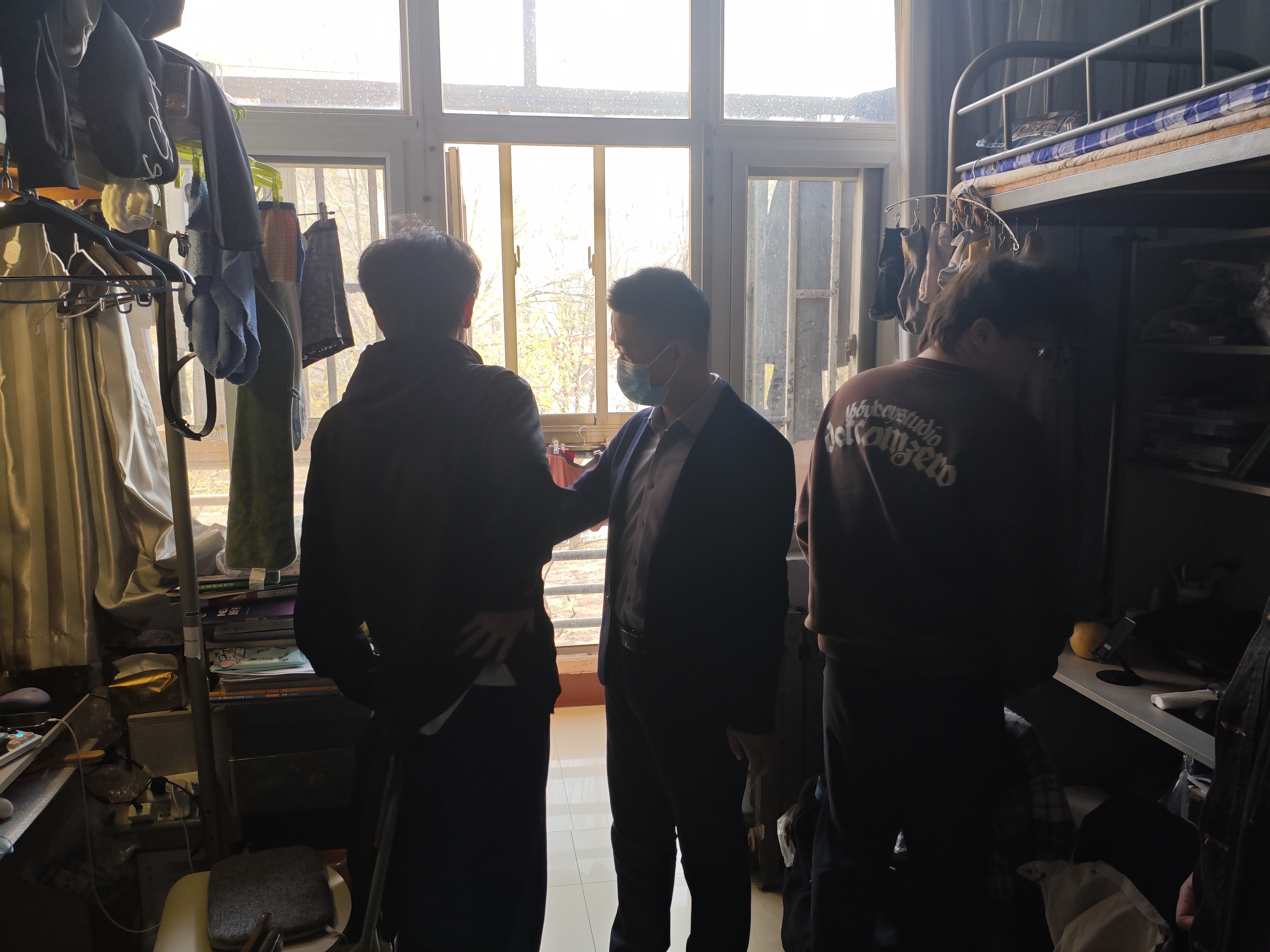 带队过程中,满强老师深入学生宿舍,对桌面物品摆放、卫生间边角清洁等关键区域进行细致排查,当场发现问题,当即督促整改,并给予同学们卫生常态保持、纪律时时自检的系列建议。针对部分桌面、床铺物品杂乱的宿舍,他耐心引导学生,讲解、示范有序收纳和分类整理的具体方法;针对部分卫生间存在死角、污垢难清理的宿舍,他亲自演示清洁流程,使同学们认识到卫生细节不容忽视,整洁和干净缺一不可。同学们认真聆听,虚心接受建议,纷纷表示将立刻行动,积极落实整改要求,争当样板文明宿舍。