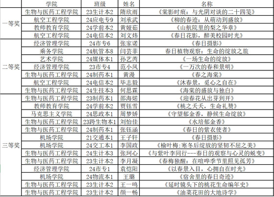 此次大赛中,同学们纷纷化身自然的记录者,凭借手中的镜头与灵动的文字,精心描绘植物生长的奇妙旅程。隋欣雨同学的一等奖作品《棠影时痕:与光阴对谈的二十四笺》,以细腻笔触勾勒海棠盛放的诗意;黄漫同学的《春之海棠》荣获二等奖,将春日生机凝于方寸之间;更有刘怡佳、张钰涵、张珂心、李月凝、王一鸣、颜一畅等多位同学的作品,从不同角度展现了生物与医药工程学院学子对自然的敏锐洞察和独特审美,喜获三等奖。