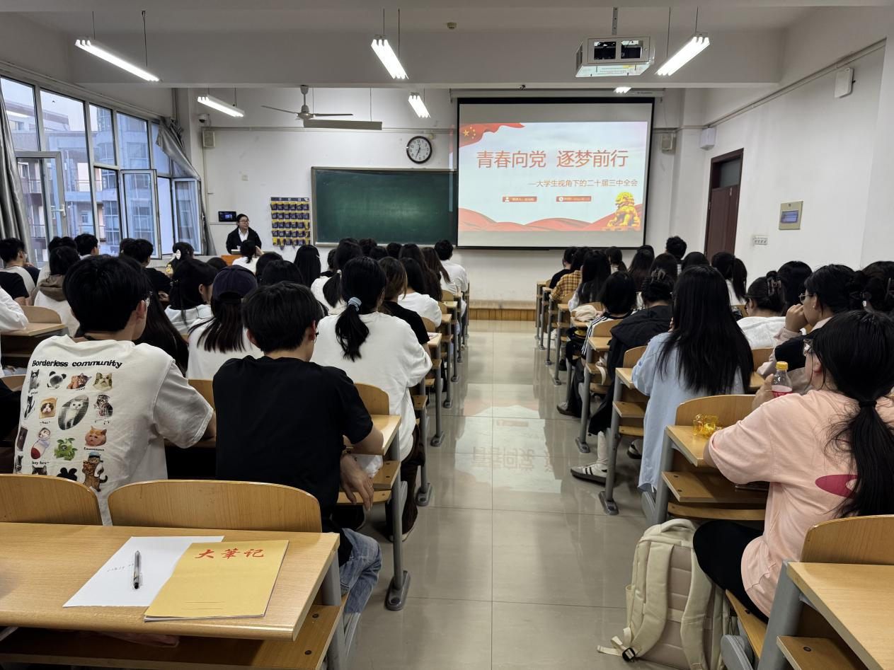 此次培训活动以党的二十届三中全会为核心内容,两位同学首先介绍了会议概况,点明其在推进中国式现代化关键时期召开的重大意义。随后,结合改革开放以来我国在经济、科技、教育等多领域的伟大成就,深入解读了全会核心内容,着重阐述了习近平新时代中国特色社会主义思想的引领作用与全面深化改革的关键价值。最后,通过播放青年大学习“来一起学习党的二十届三中全会精神”短片,以全国各地大学生讲述家乡产业转型、数字化发展的故事为切入点,从大学生视角对学业深造、就业创业、社会建设等方面的机遇与挑战进行剖析,激励在座的同学们珍惜机遇、应对挑战、提升能力,在理论与实践的双重学习中成长成才,实现人生价值。