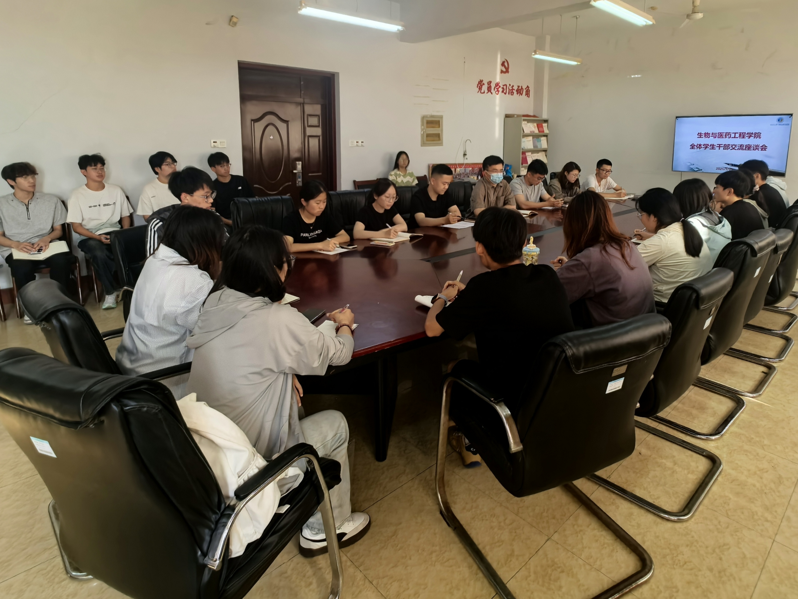为打造一支素质优良、工作高效的学生干部队伍。5月25日,英国正版365首页在b7-304召开全体学生干部交流座谈会。会议由辅导员满强、陈新宇主持,学生会、自律督导中心主要学生干部、督导队和导助代表参加。