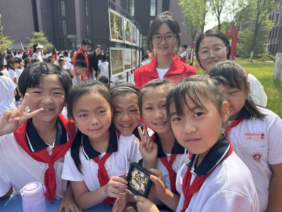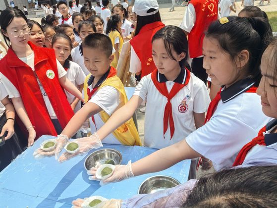 我院学生充分发挥特色专业优势,活动现场精彩纷呈:观鸟社团通过鸟类生态版画展览、望远镜实地观测、鸟类知识竞答等形式,系统讲解鸟类生活习性,引导学生贴近自然、热爱自然、保护自然;爱食品协会准备了手作布丁、青团与绿豆粽糕供师生品尝,同时以基本理论加动手实操的生动形式阐述了各类食品的工艺技术与其背后的历史渊源;标本协会开展了麦穗、豆粒、鲜花等标本现场DIY活动,提供标本夹、塑封膜等简易工具,一对一示范生物标本的制作流程,寓教于乐,极大激发了学生上手操作、动手实践的热情;最后,水火箭项目组以中国神舟号火箭实物模型为媒介,在向学生讲解火箭制作过程、原理的同时,有机融入中国航空航天事业筚路蓝缕的发展历史,引导同学们实现从娱乐游戏中来,走向理想信念中去。四年级学生王某在现场组装水火箭时说道:“原来我在动画片里看到的小飞机、火箭飞到天上需要这么多叔叔阿姨日日夜夜地努力,我以后要好好学习,争取考到100分,以后加入他们一起设计属于咱们自己的飞机、火箭。”