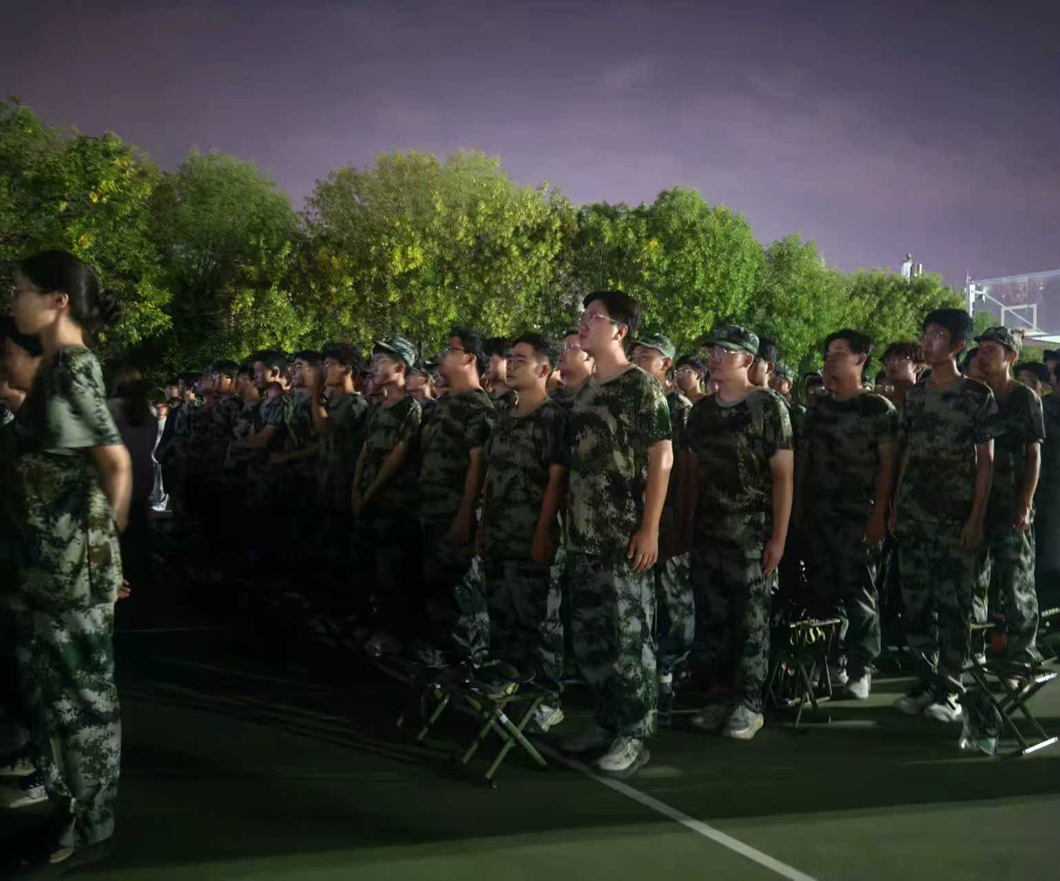 夜色降临,训练并未止息。路灯下,是各个班级自发组织、加班加点加练的身影。“这里节奏再卡准一点!”“我们排面一定要齐!”“唱红歌时一定要声音洪亮!”这样的讨论声不绝于耳。没有人要求,但所有人都心甘情愿地留下,为了集体的荣誉孜孜不倦地努力。这种自强不息、奋起直追的精神,让夜晚的训练场充满了令人动容的奋进力量。直到熄灯回寝前,学生们仍在一遍遍复盘动作要领,将“锲而不舍”四个字深深地刻入骨髓。