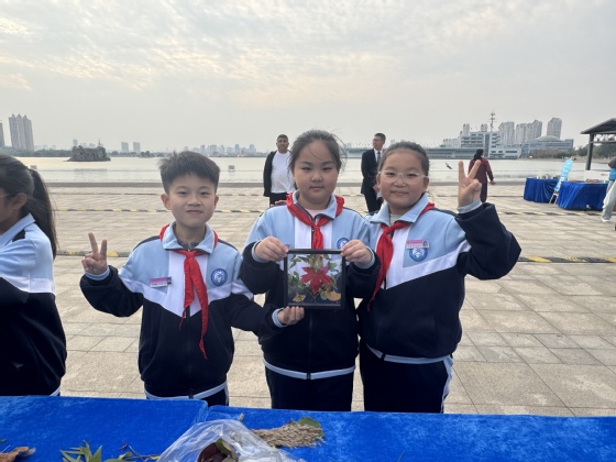 活动伊始,满强老师首先对志愿服务队中海中学分队的正式成立表示热烈祝贺;他表示,希望队员们齐聚黄河畔,以“万里同心之志”,共赴“守护黄河之约”,在志愿实践中积极锤炼本领,在志愿传递中弘扬大我精神。随后,大学生志愿者为小学生带来了生动的本地生态科普讲座,他们精心准备了滨州市域内栖息的珍稀鸟类图集与高清照片,详细讲解了这些“空中精灵”的外形特征、生活习性及其在黄河生态系统中的生态位,引发了同学们的浓厚兴趣。实操环节,在大学生志愿者的耐心指导下,小学生们亲手操作望远镜,学习观鸟的基本方法和注意事项,尝试去发现和观察远处枝头跳跃的鸟儿,亲身感受生物多样性的魅力。此外,活动现场设置了动植物标本制作环节,通过直观接触与动手体验,让同学们深刻理解物种保护与环保研究的意义。为巩固所学知识,活动现场还穿插了紧张有趣的环保知识问答,小学生踊跃参与,争相答题,在轻松愉快的氛围中将“万里同心共护黄河”的生态理念内化于心、外显于行。