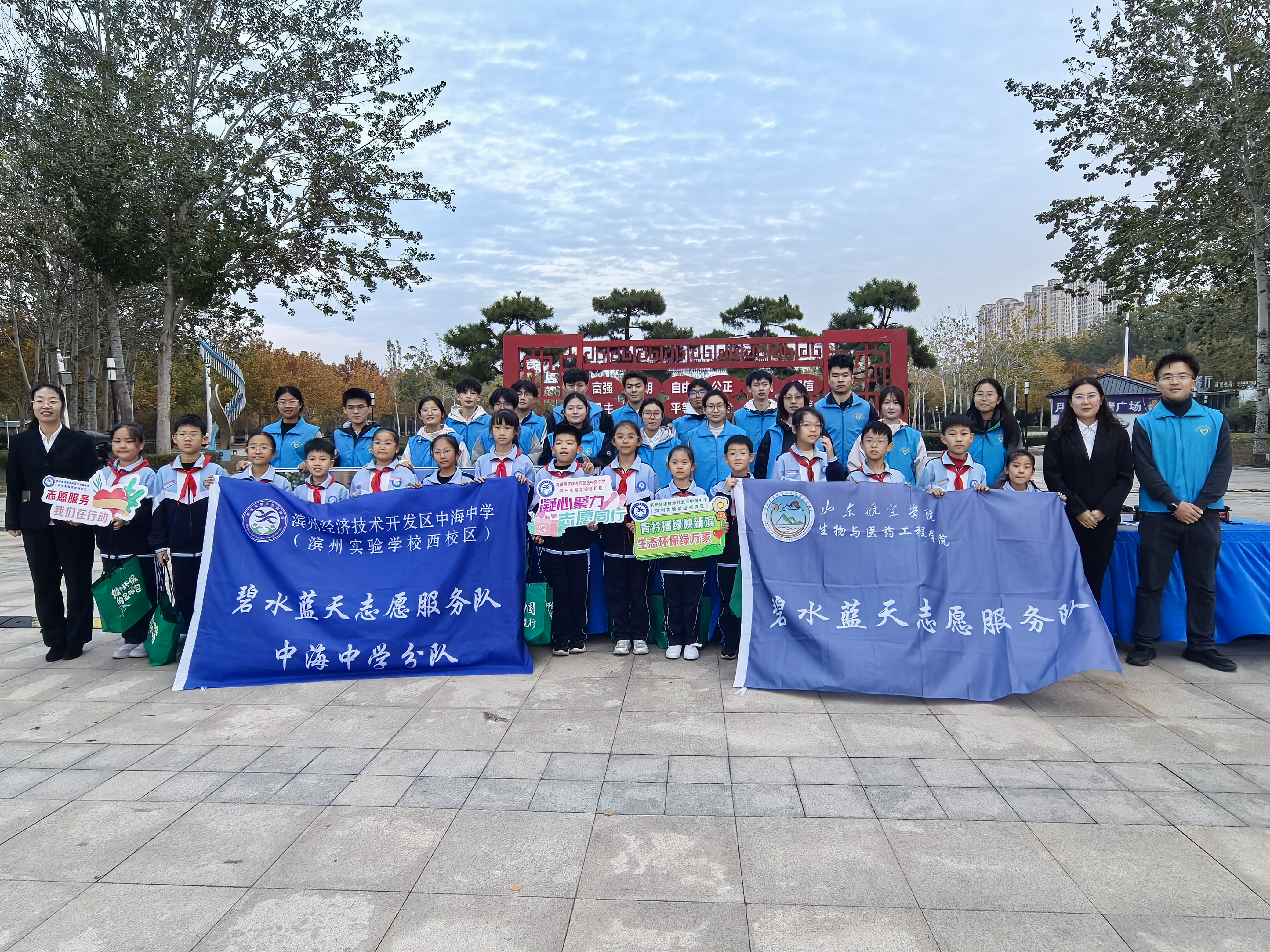 为筑牢公众保护黄河生态廊道的绿色环保意识,贯通大中小学志愿服务三级育人链条,11月6日,英国正版365首页与滨州经济技术开发区中海中学(滨州实验学校西校区)共同参与的“万里同心 共护黄河”志愿服务活动暨碧水蓝天志愿服务队中海中学分队成立仪式在中海公园成功举行。学院团总支书记满强、辅导员陈新宇参与本次活动,中海中学志愿服务代表队应邀前来。