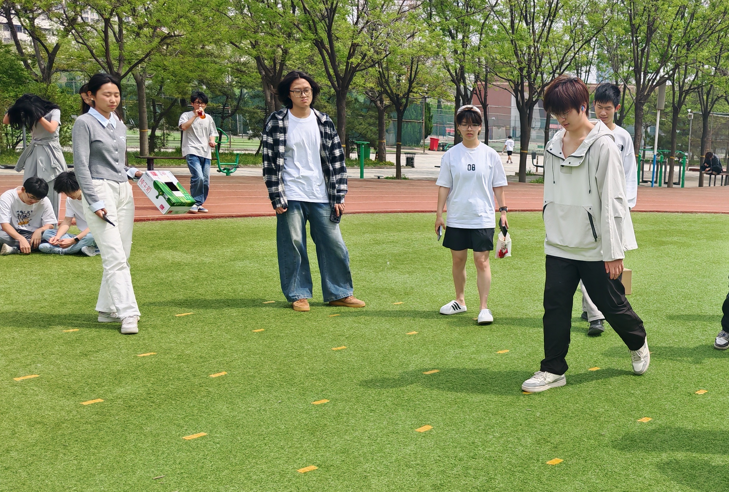 活动现场搭建实景互动棋盘,深度融合交通安全真实场景,精准设置安全答题区、奖惩专区及功能关卡,实现趣味游戏与安全教育的无缝衔接,让同学们在沉浸式体验中深化安全认知。在现场裁判的统一指挥下,各小组轮流投掷骰子、协同前行,从容应对棋盘上的各类安全挑战:交通安全知识答题关卡中,大家通力协作、踊跃作答,扎实巩固安全理论基础;奖惩关卡里,各组积极完成各类交通工具的主题任务,在交警不同手势的进退之间深化对安全规则的理解;互动实操关卡中,同学们现场学习安全技能,沉浸式体验道路维修、交通堵塞、紧急灭火等各类常见随机事件的挑战。各小组分工协作、默契配合,全程文明参与、有序比拼,现场气氛热烈欢快。