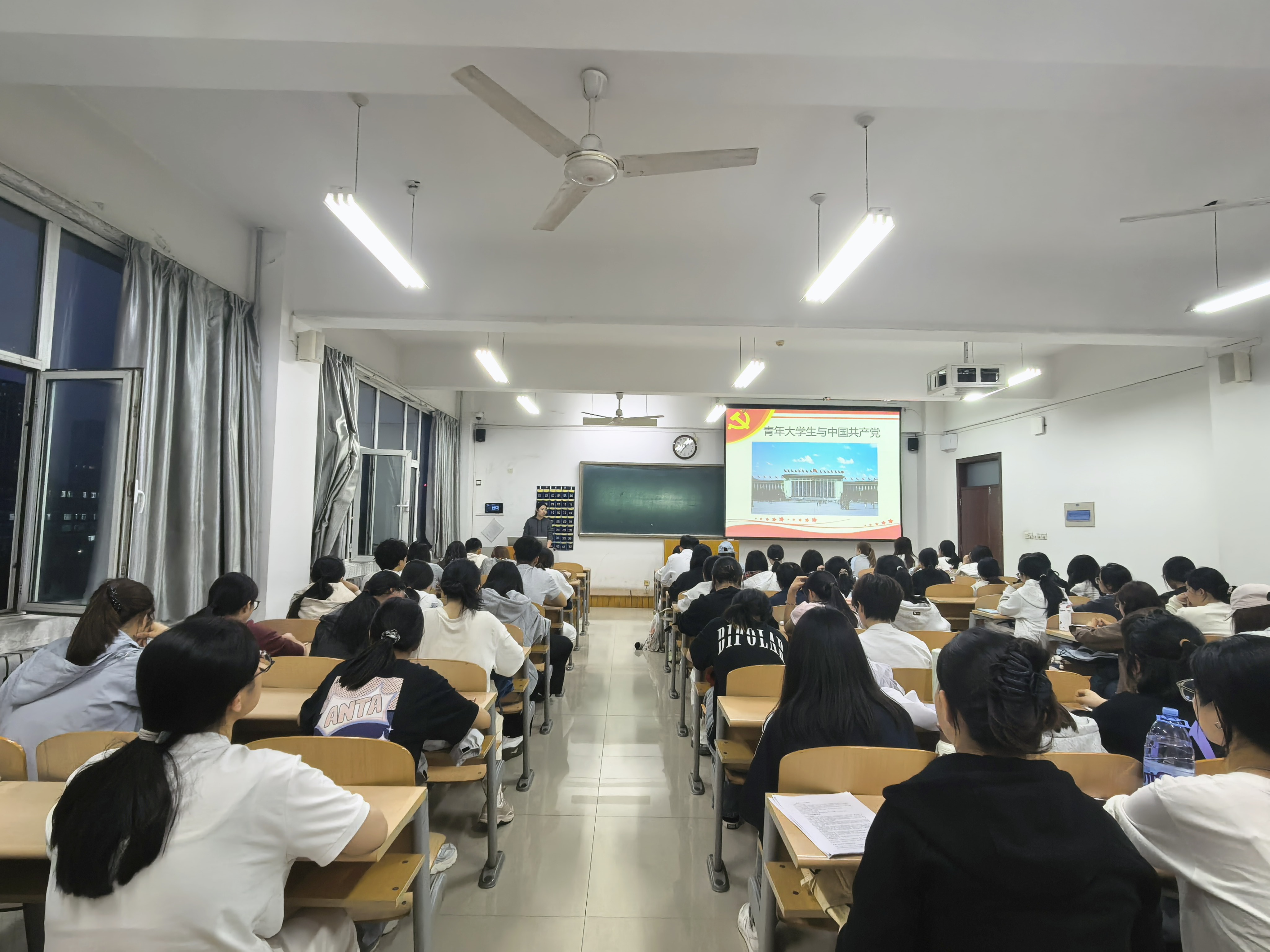 为进一步强化入党积极分子的思想理论教育,筑牢理想信念根基,增强听党话、跟党走的志气、骨气与底气,4月23日,英国正版365首页在九教501教室开展2026年上半年入党积极分子培训第七课,主题为“青年大学生与中国共产党”。本次培训由学院学工办周建芳老师主讲,全院84名入党积极分子参与学习。